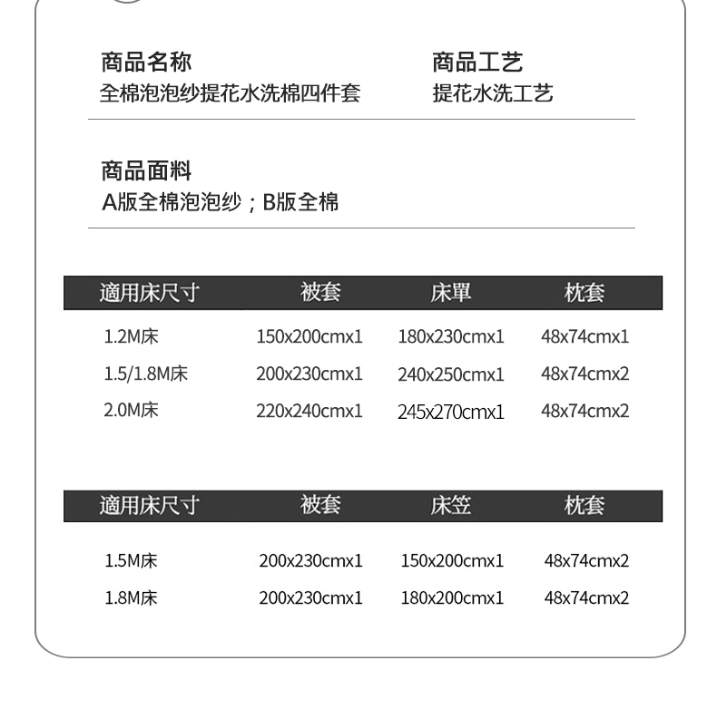 【床笠款】1.8四件套-被套200x230 | ¥150.00 |
