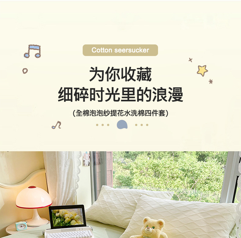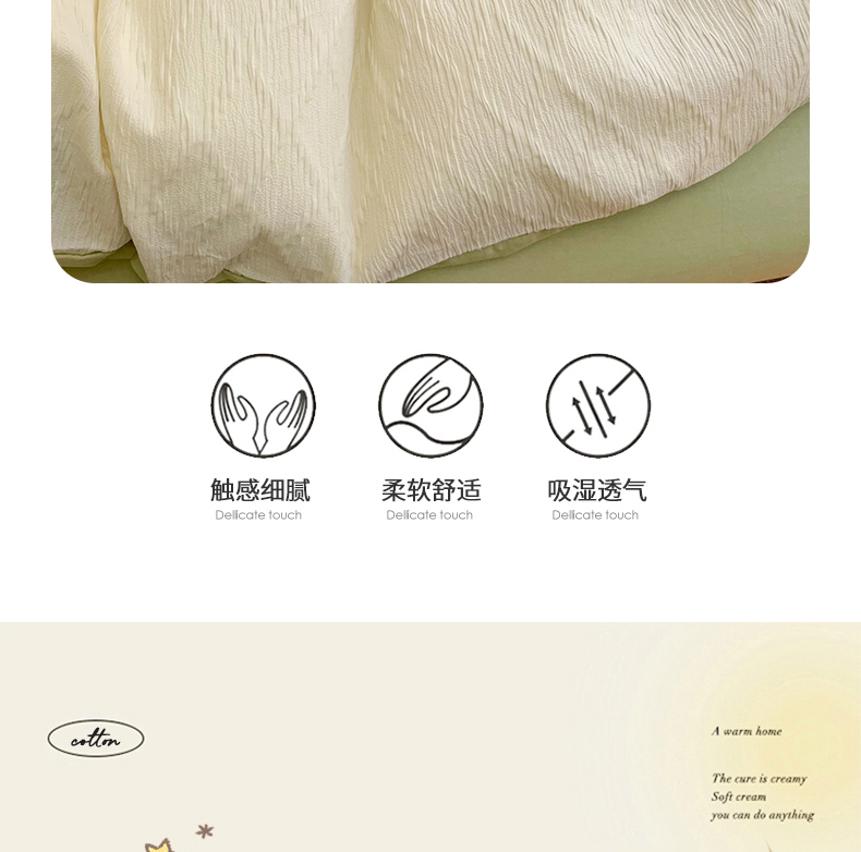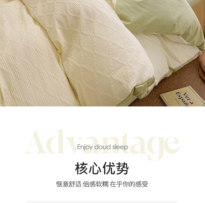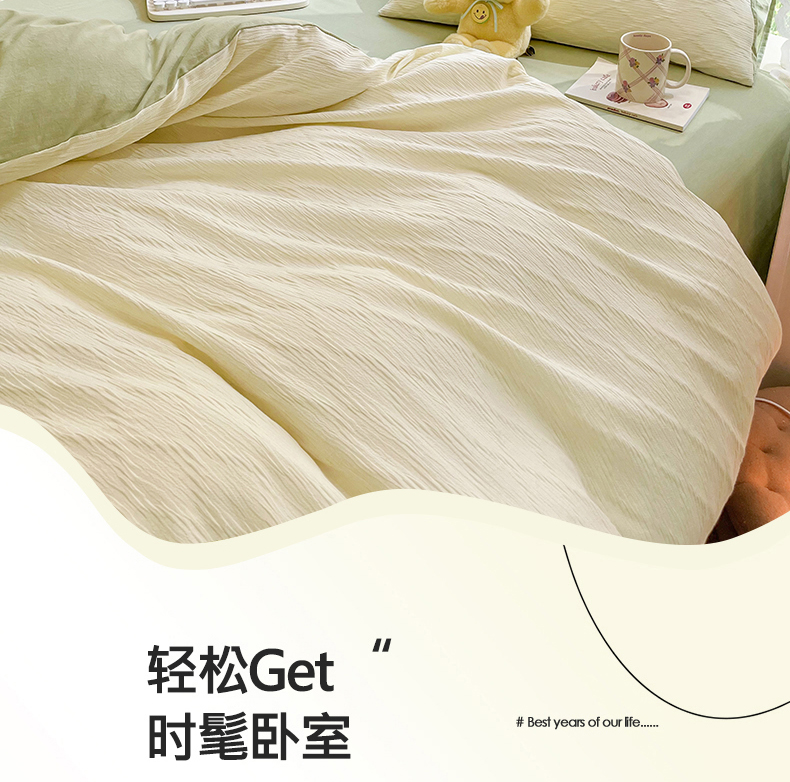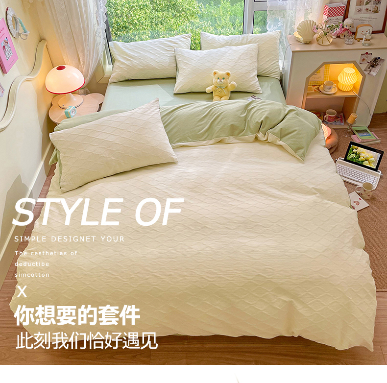 当前位置: 91家纺网 > 商品网购 > 床品套件 > 四件套 > 全棉普通四件套 > 琪格格纺织 2026新款纯棉纯棉色织肌理纹提花华夫格纯棉轻奢简约款四件套 泡泡纱米白VS奶绿