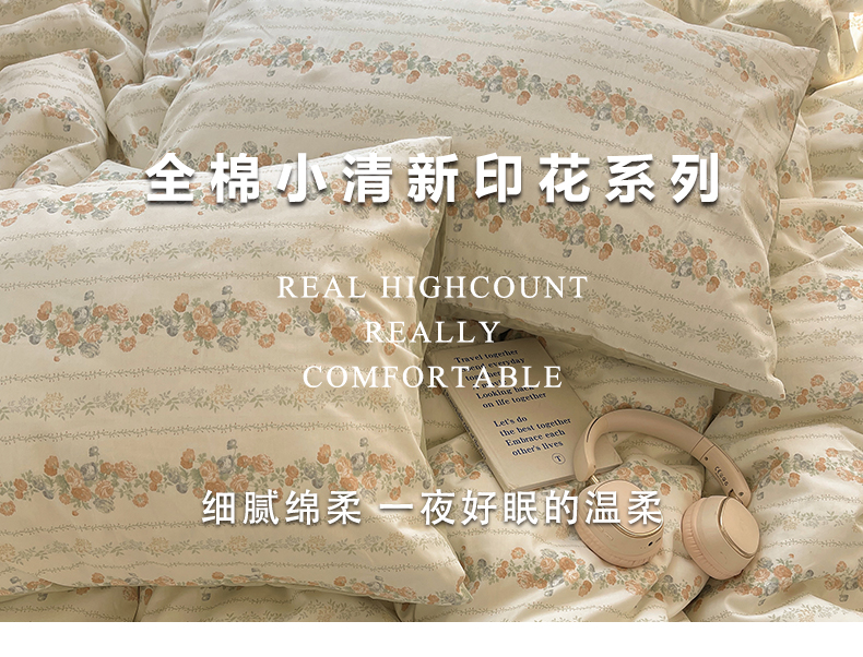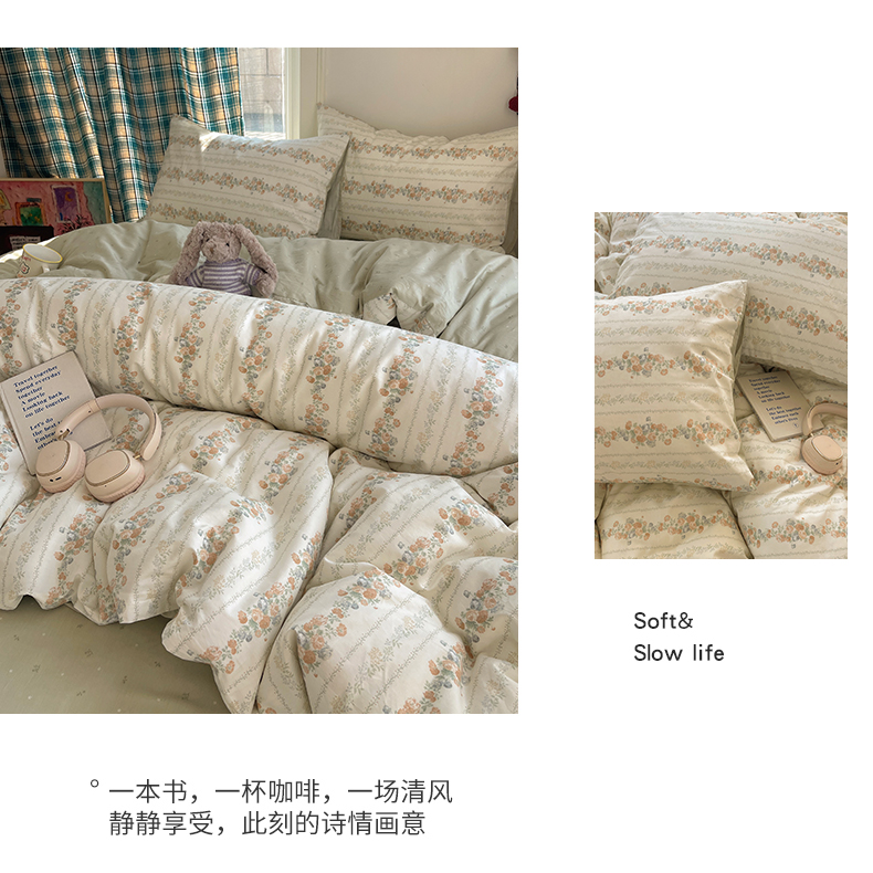 当前位置: 91家纺网 > 商品网购 > 床品套件 > 四件套 > 全棉普通四件套 > XIWEN-希文家纺 2026春夏新款40支全棉纯棉13372小清新印花四件套 椿茶弥香