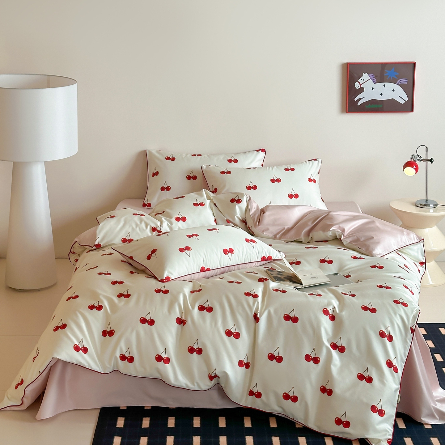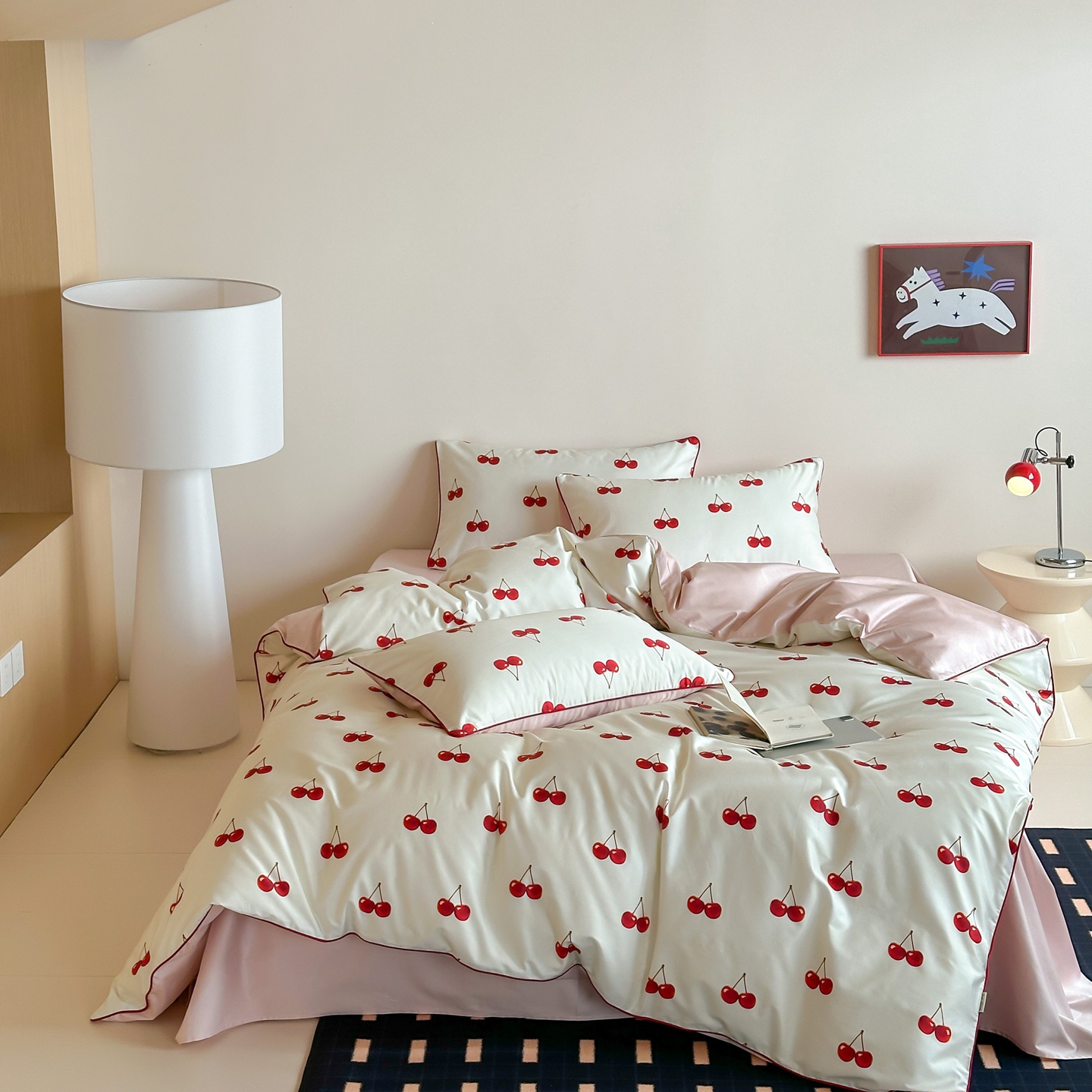 桔子家纺 2026春夏新款100s全棉纯棉复古樱桃系列四件套-场景一 复古樱桃-粉