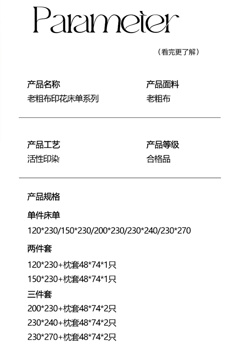 230*270单床单+2只枕套 | ¥34.00 |