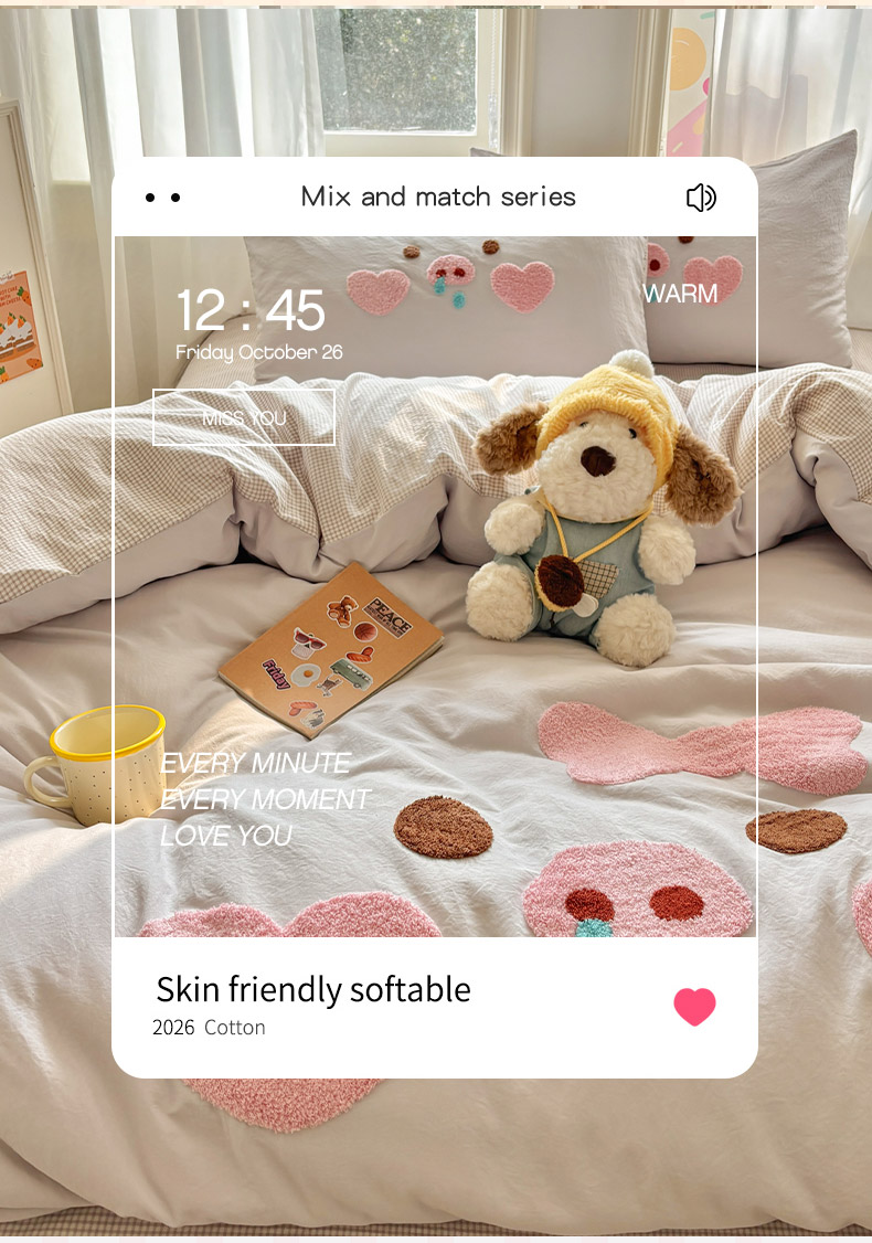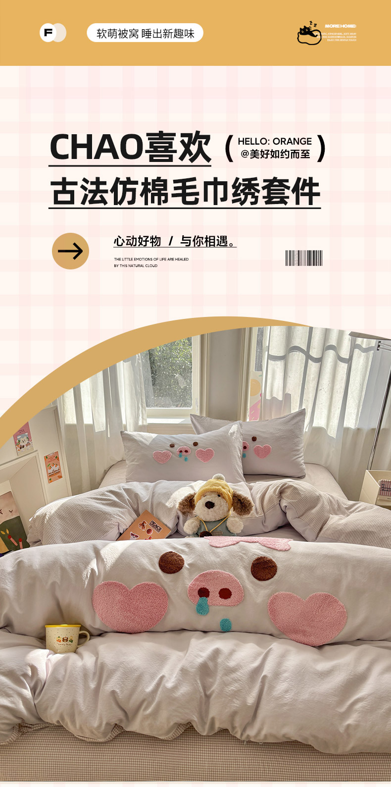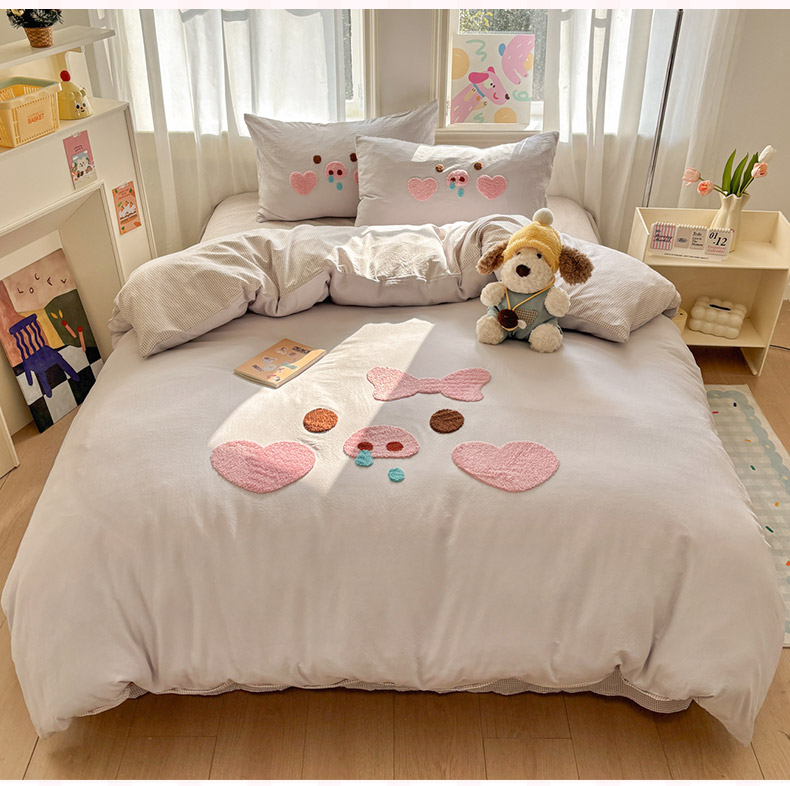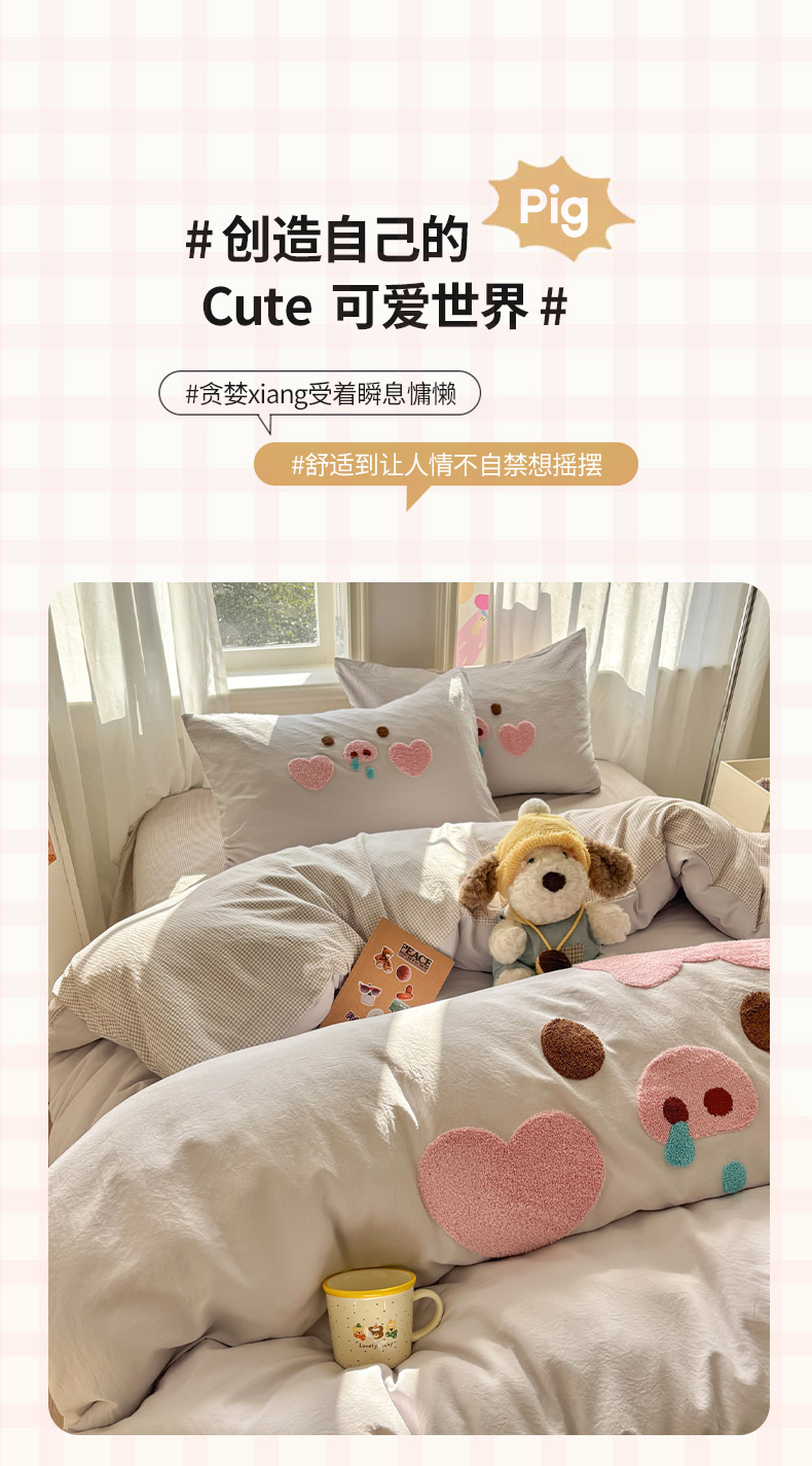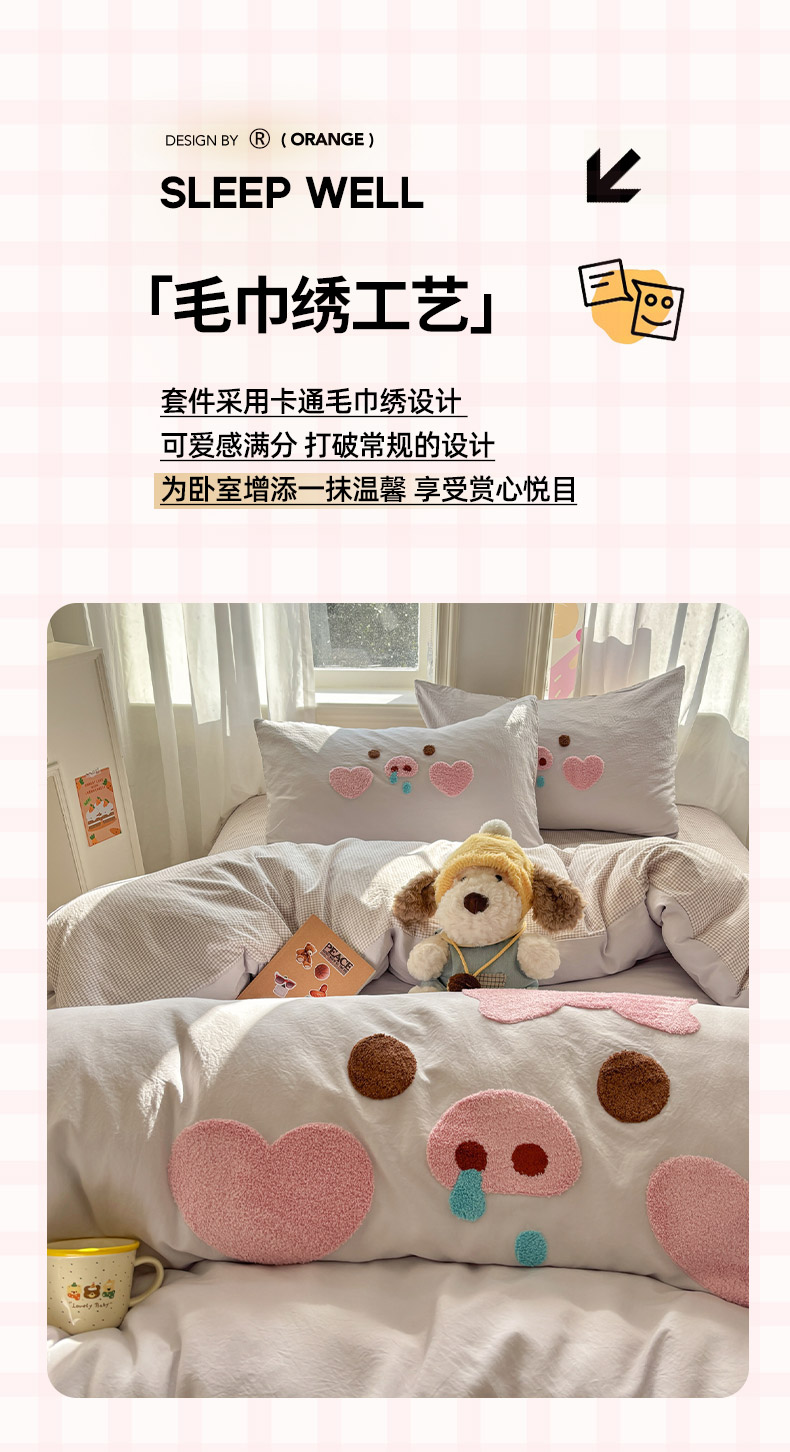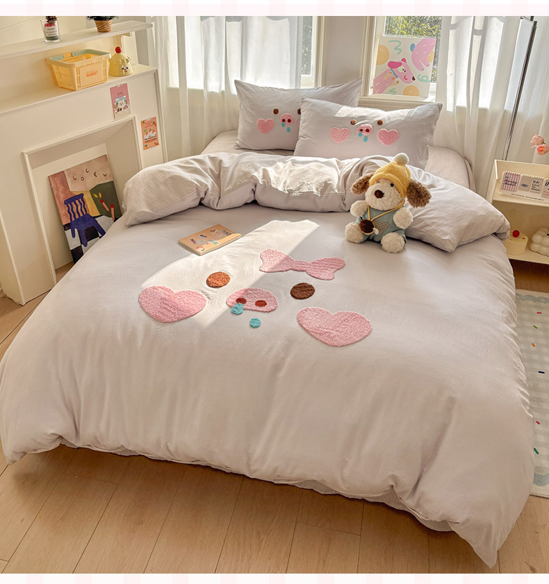 当前位置: 91家纺网 > 商品网购 > 床品套件 > 四件套 > 其它四件套 > 色鬼布艺高端家居主号 2026新款古法毛巾绣四件套 爱心猪猪-灰