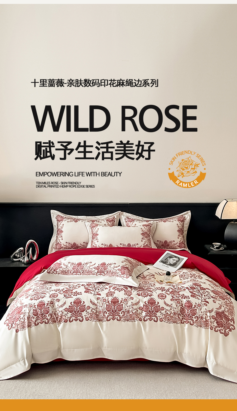 当前位置: 91家纺网 > 商品网购 > 床品套件 > 四件套 > 其它四件套 > (总)置顶家纺 2026新款十里蔷薇-亲肤数码印花麻绳边系列