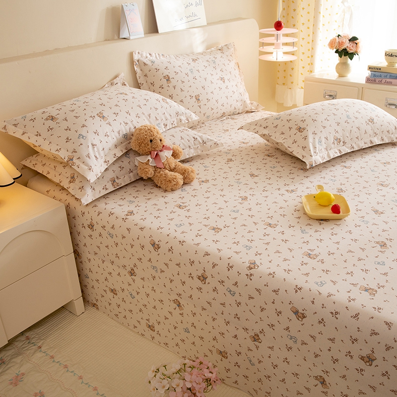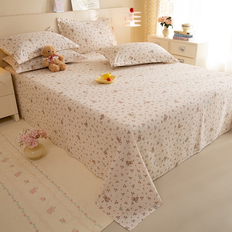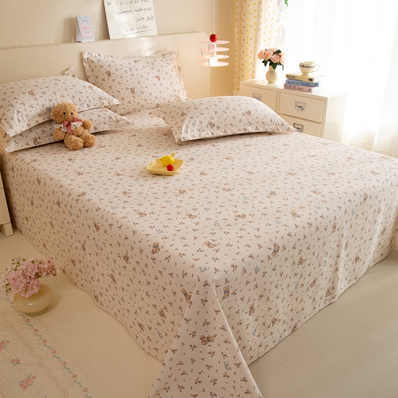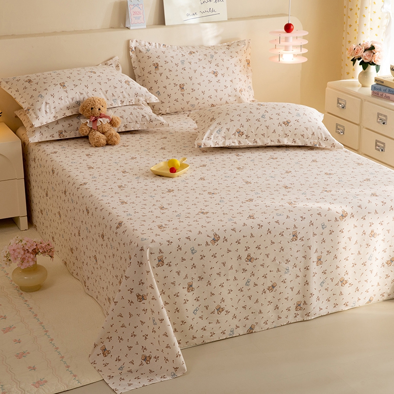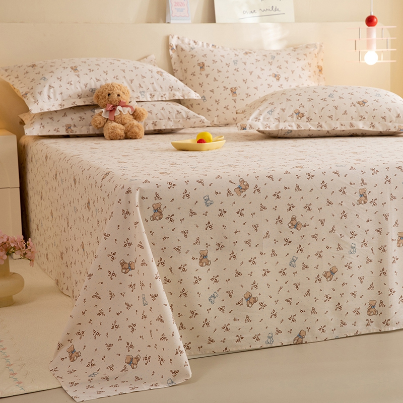 八十八家纺2025新款全棉12868系列四件套单品床单 花间小熊
