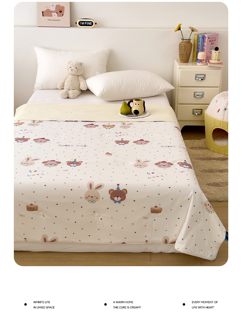 当前位置: 91家纺网 > 商品网购 > 被子 > 普通夏被 > 岚司羽 2026新款卡通锦氨凉感夏被系列 生日派对-米