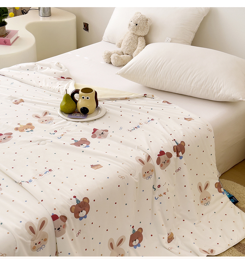 • 91家纺网 家纺一手货源 找家纺 岚司羽 2026新款卡通锦氨凉感夏被系列 生日派对-米