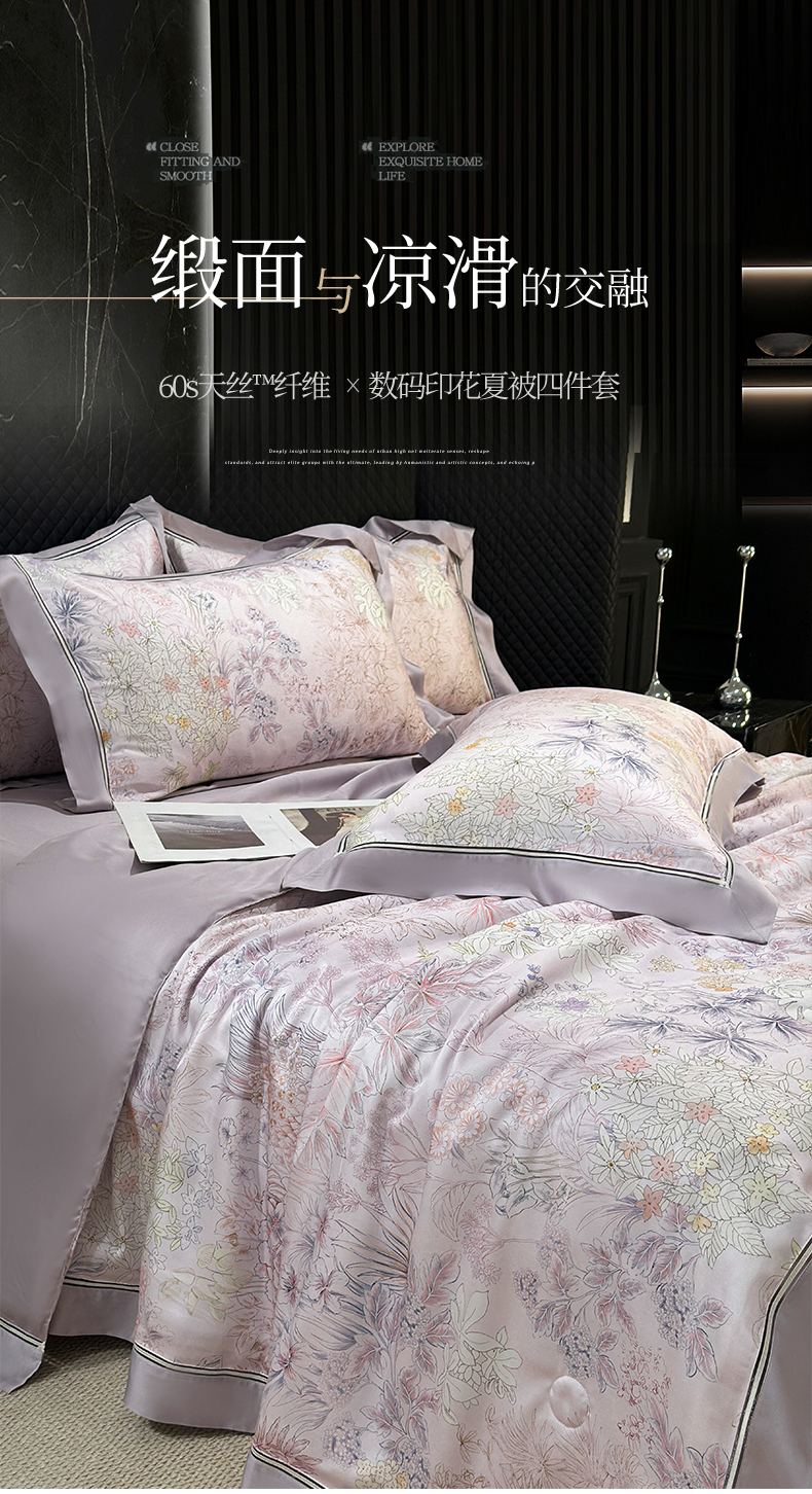 • 91家纺网 家纺一手货源 找家纺 岚司羽 2026春夏新款60天丝夏被四件套夏凉被空调被系列 知夏