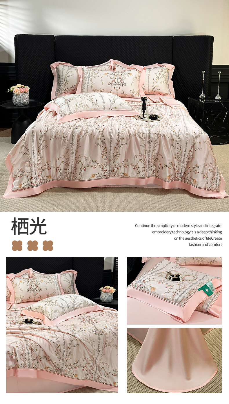 • 91家纺网 家纺一手货源 找家纺 (总)岚司羽 2026春夏新款天丝棉银丝提花绣花四件套臻雅系列,臻雅 --深雅灰,臻雅--海天蓝,臻雅--浅焦糖,臻雅--樱花粉