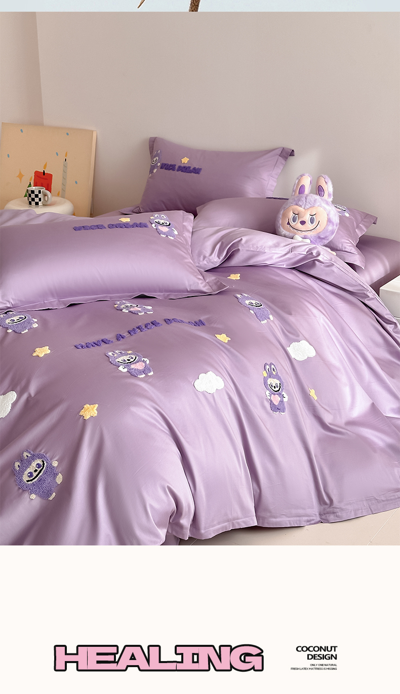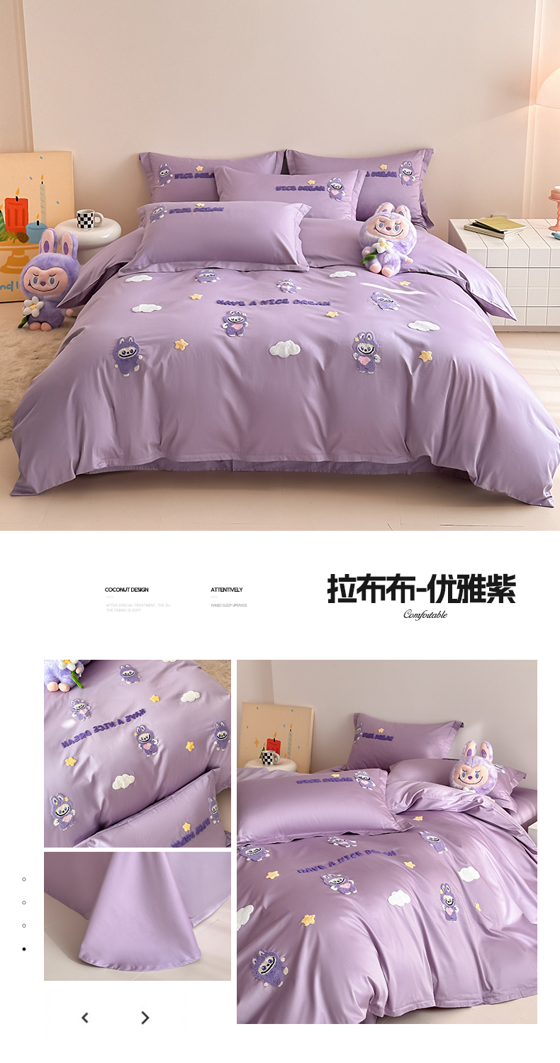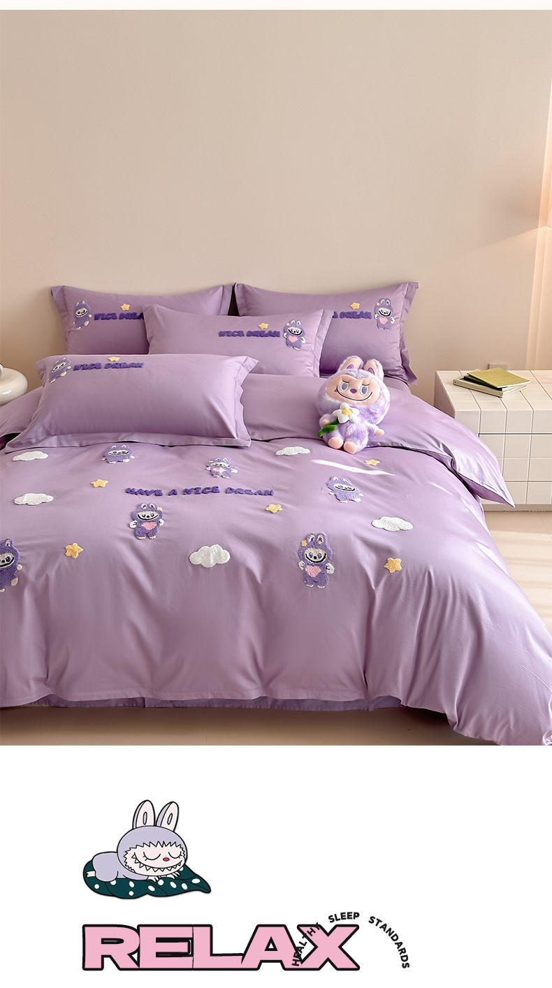 当前位置: 91家纺网 > 商品网购 > 床品套件 > 四件套 > 全棉普通四件套 > 润锦云 2026新款卡通款-A类全棉纯棉毛巾绣四件套 拉布布-优雅紫