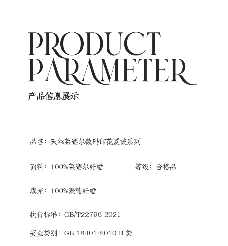 • 被套面料: 莱赛尔纤维