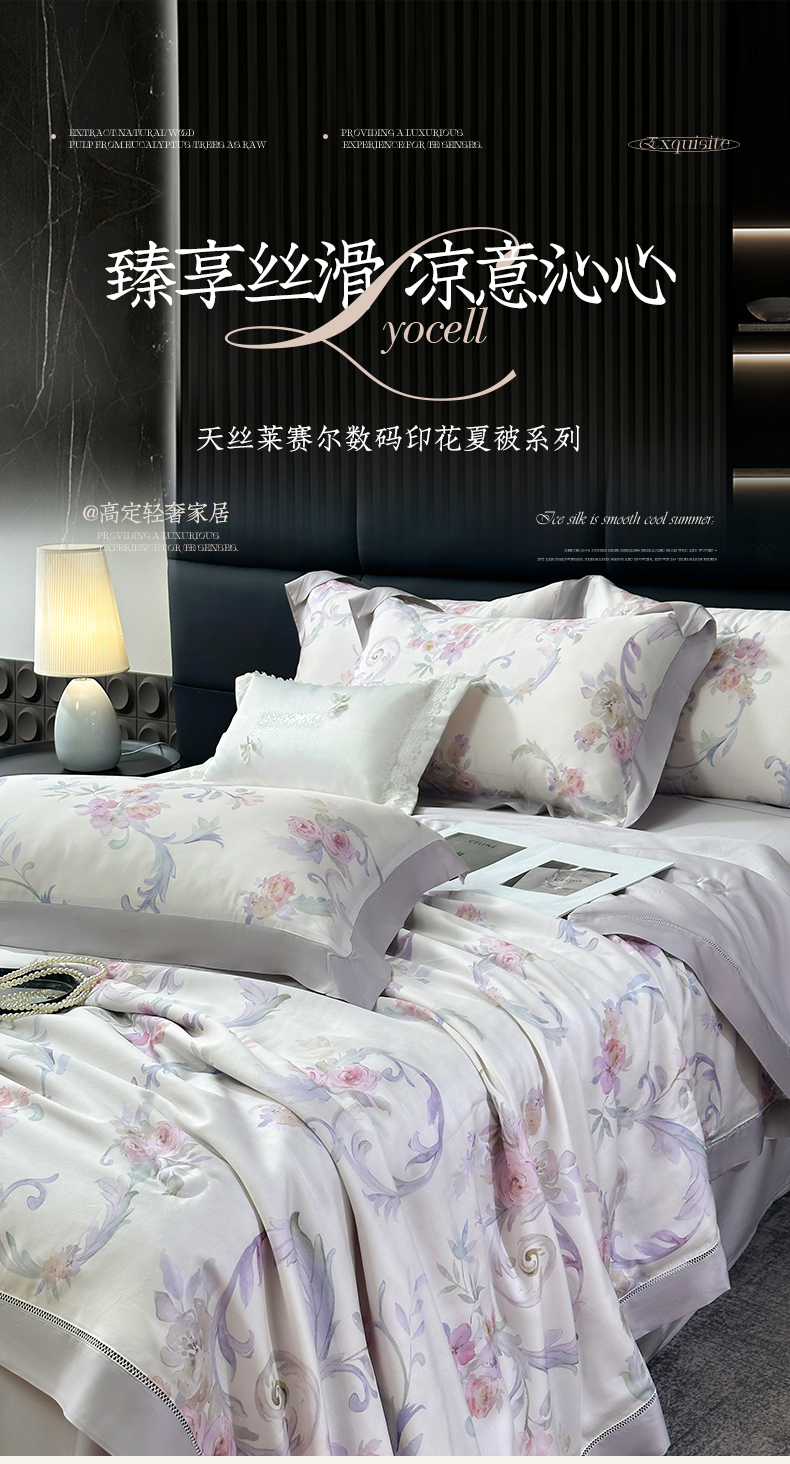 • 91家纺网 家纺一手货源 找家纺 岚司羽 2026春夏新款50天丝夏被四件套夏凉被空调被系列 美洛拉 粉紫