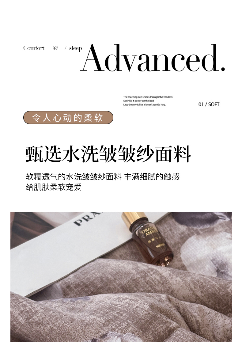 商品名称:中国龙家纺 2026新款木棉皱皱纱单夏被被子被芯 南法假日