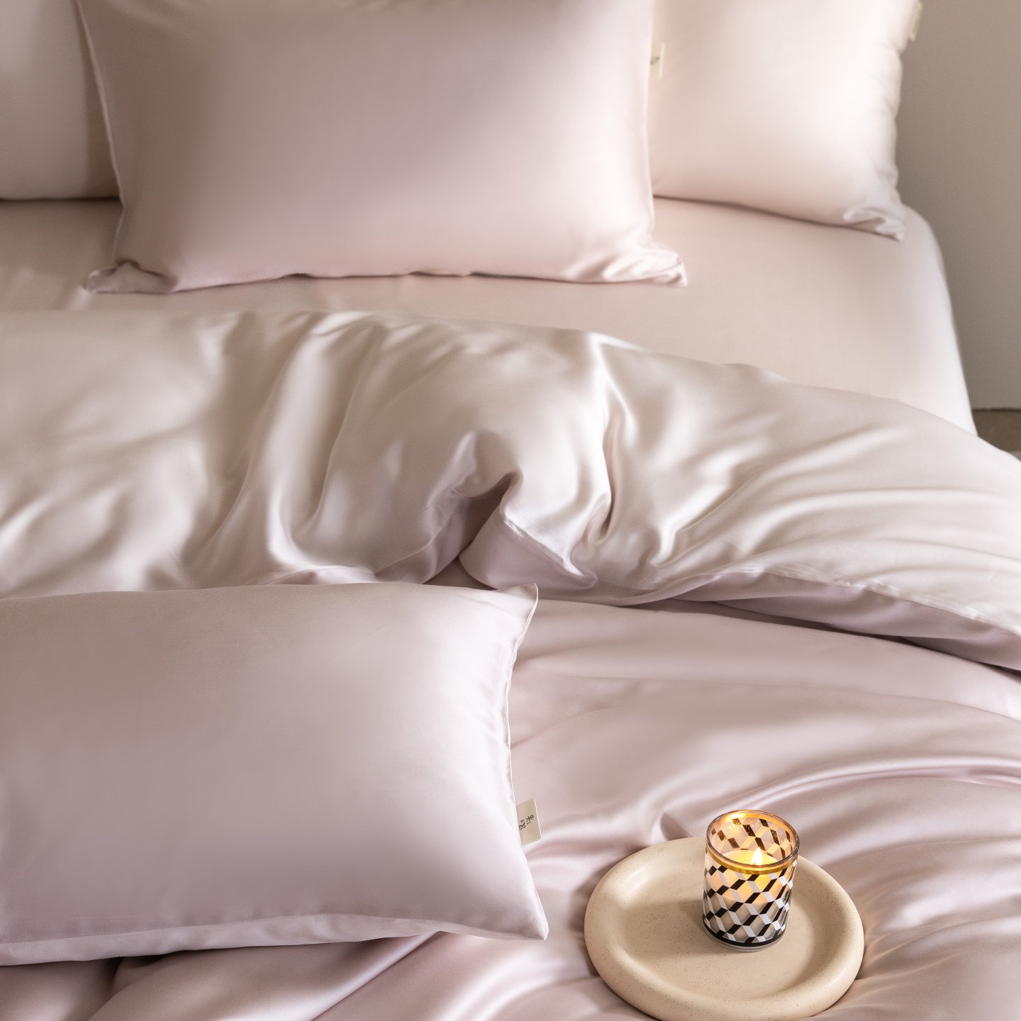 商品名称:时亿家居 2026春夏新款60天丝-丝颜悦色系列-被套四件套 缦豆沙