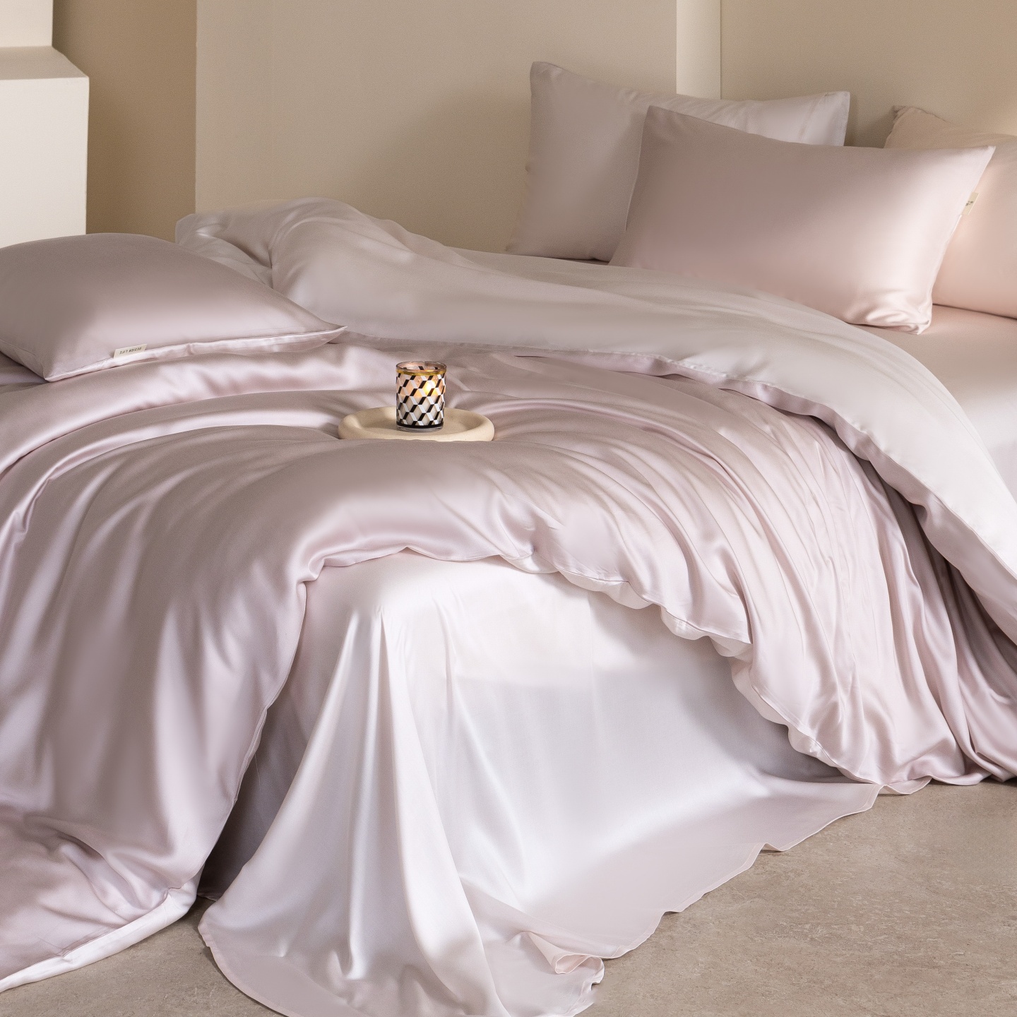 (总)时亿家居 2026春夏新款60天丝-丝颜悦色系列-被套四件套,晨阳咖,瓷器绿,丁香紫,灵境兰,缦豆沙,水晶灰,杏云粉,杏云绿,云水绿