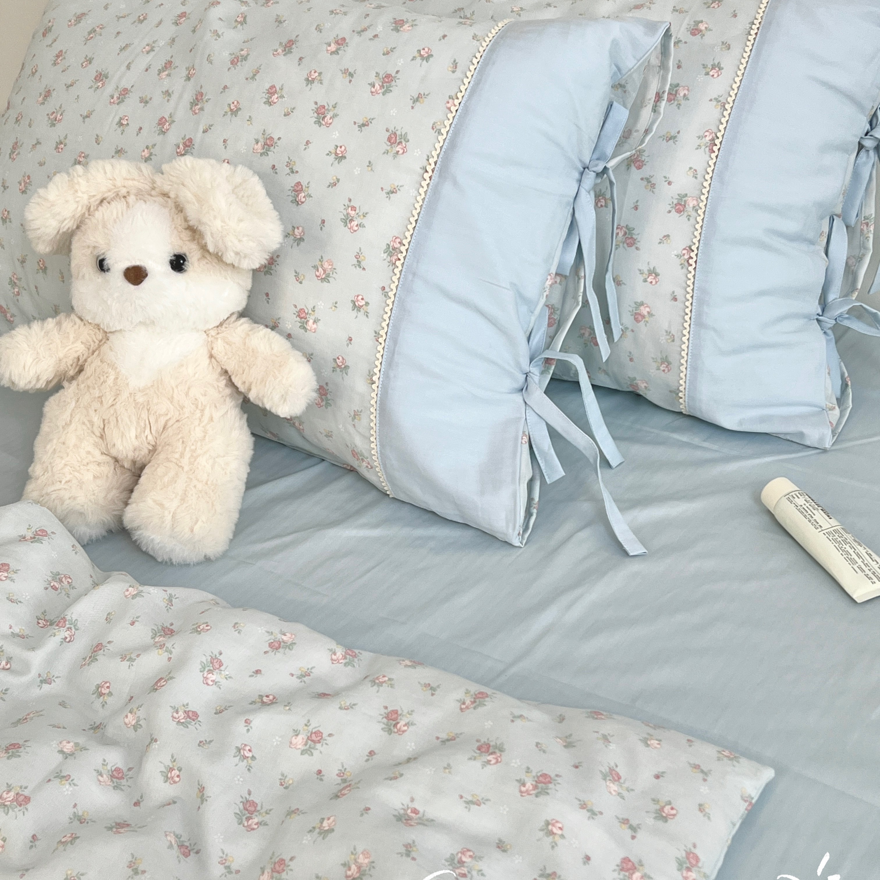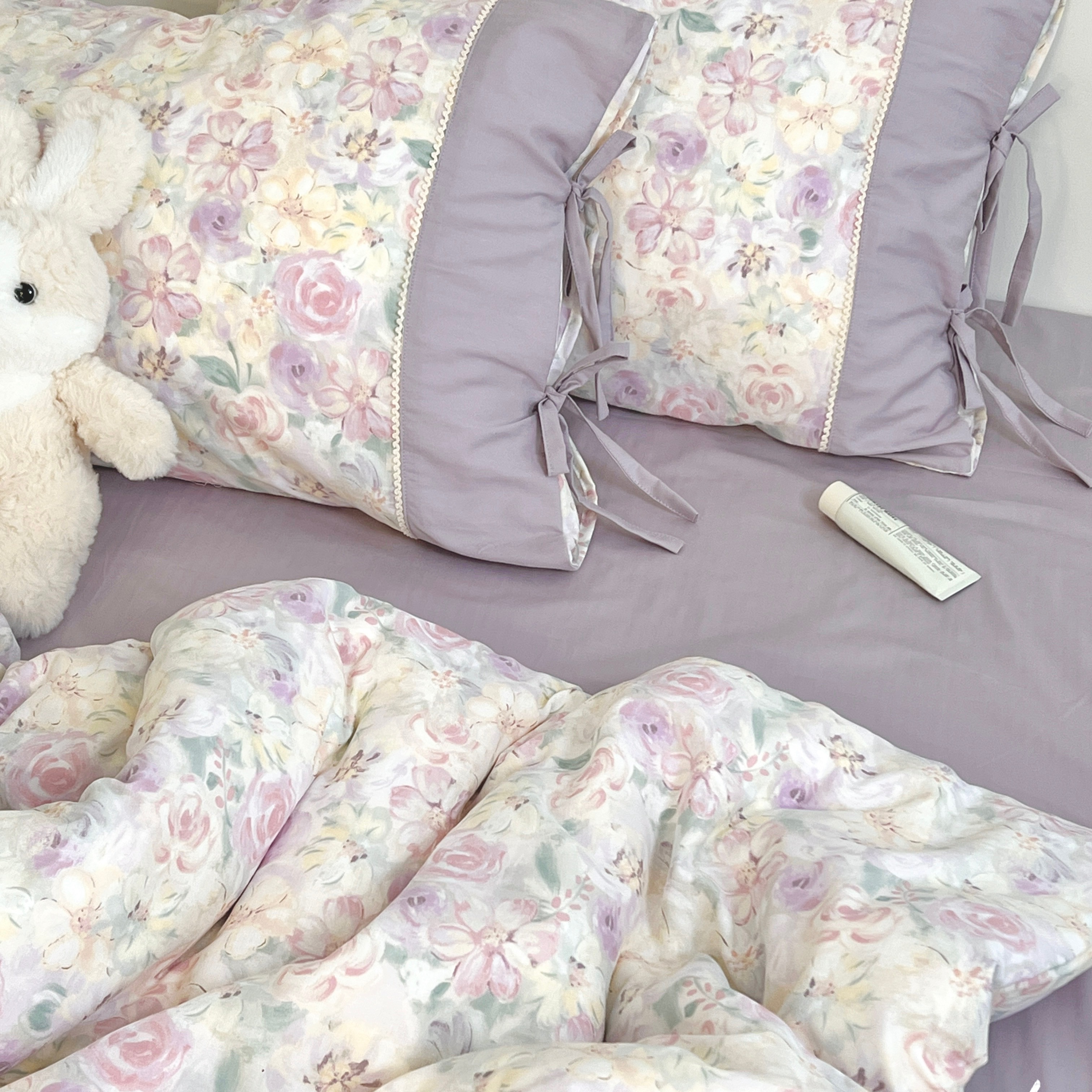 当前位置: 91家纺网 > 商品网购 > 床品套件 > 四件套 > 其它四件套 > 荣轩家居 2026新品韩式拼接系绳蝴蝶结工艺款四件套(铺床版) 花滢