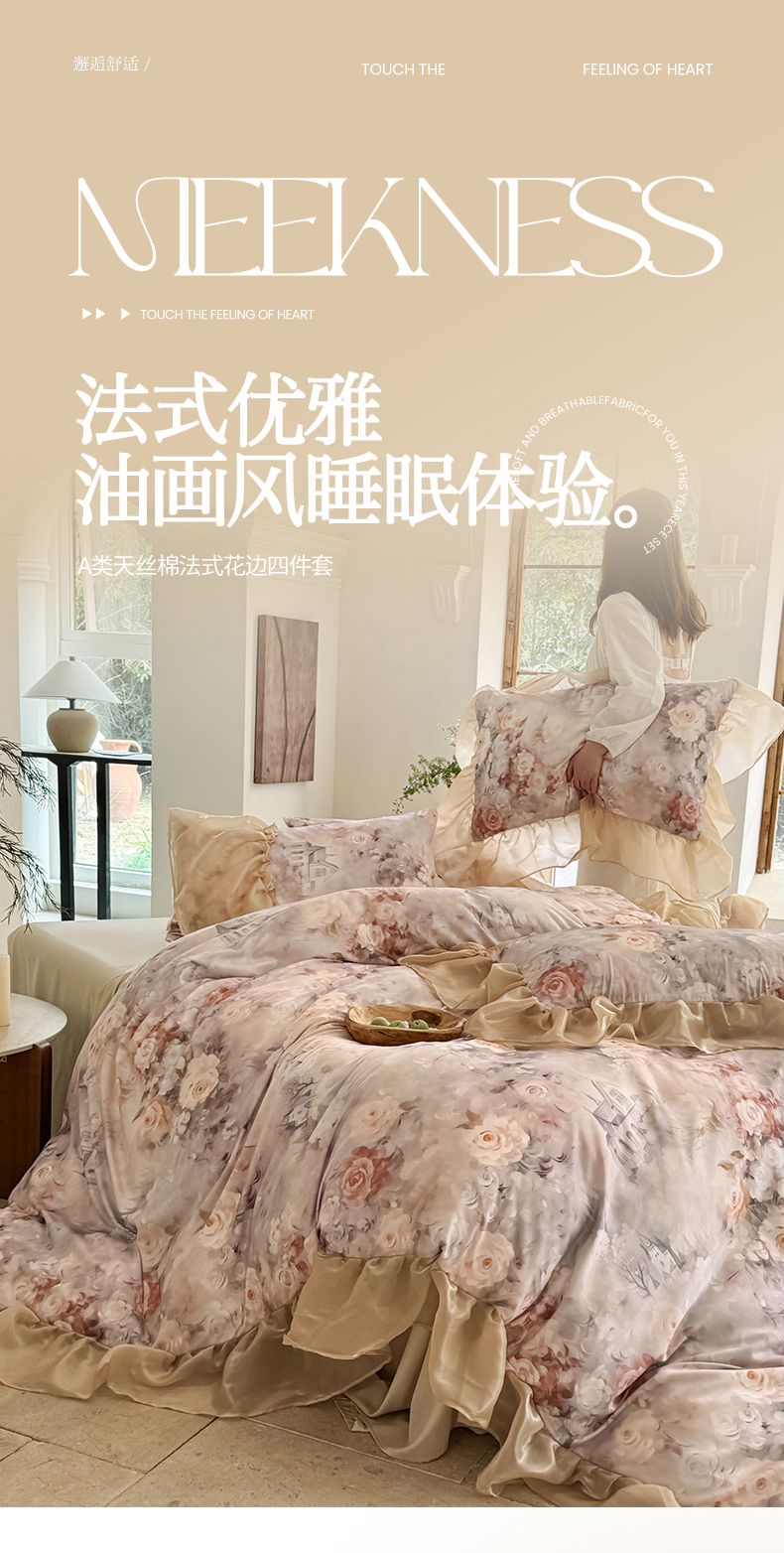 商品名称:艾米家居 2026春夏新款花边款法式天丝棉冰丝系列四件套提供买家秀 梵高花边款