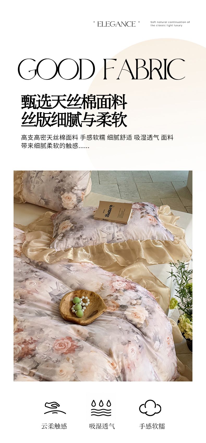 (总)艾米家居 2026春夏新款花边款法式天丝棉冰丝系列四件套提供买家秀,莫奈花园花边款,梵高花边款,花旦花边款,绿野仙踪花边款,秘密花园花边款