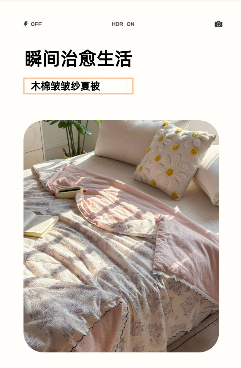 云玲时尚 2026新款木棉皱皱纱夏被被子被芯 满园春紫