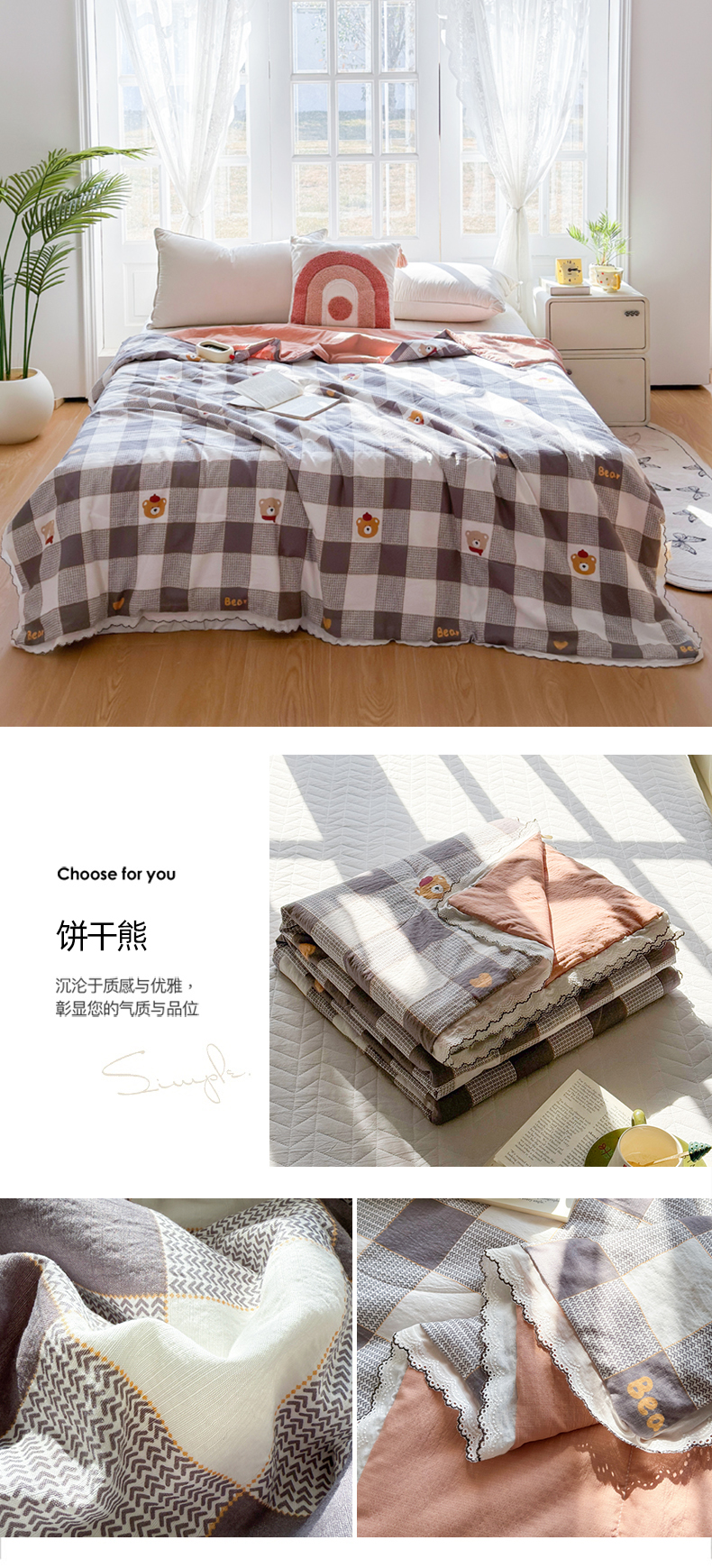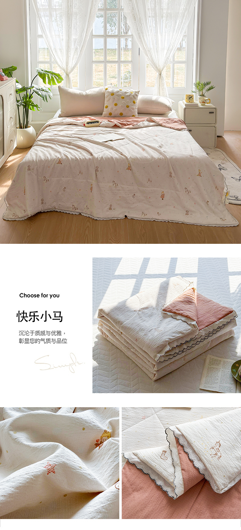 (总)云玲时尚 2026新款木棉皱皱纱夏被被子被芯,饼干熊,花惜止,快乐小马,满园春紫,泡芙小熊,兔宝果园