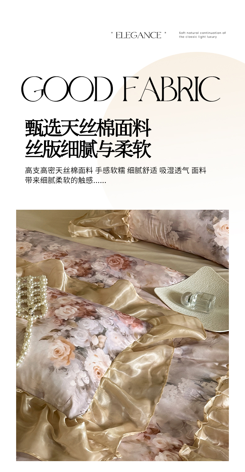 商品名称:艾米家居 2026春夏新款裙边款法式天丝棉冰丝系列四件套提供买家秀 莫奈花园裙边款