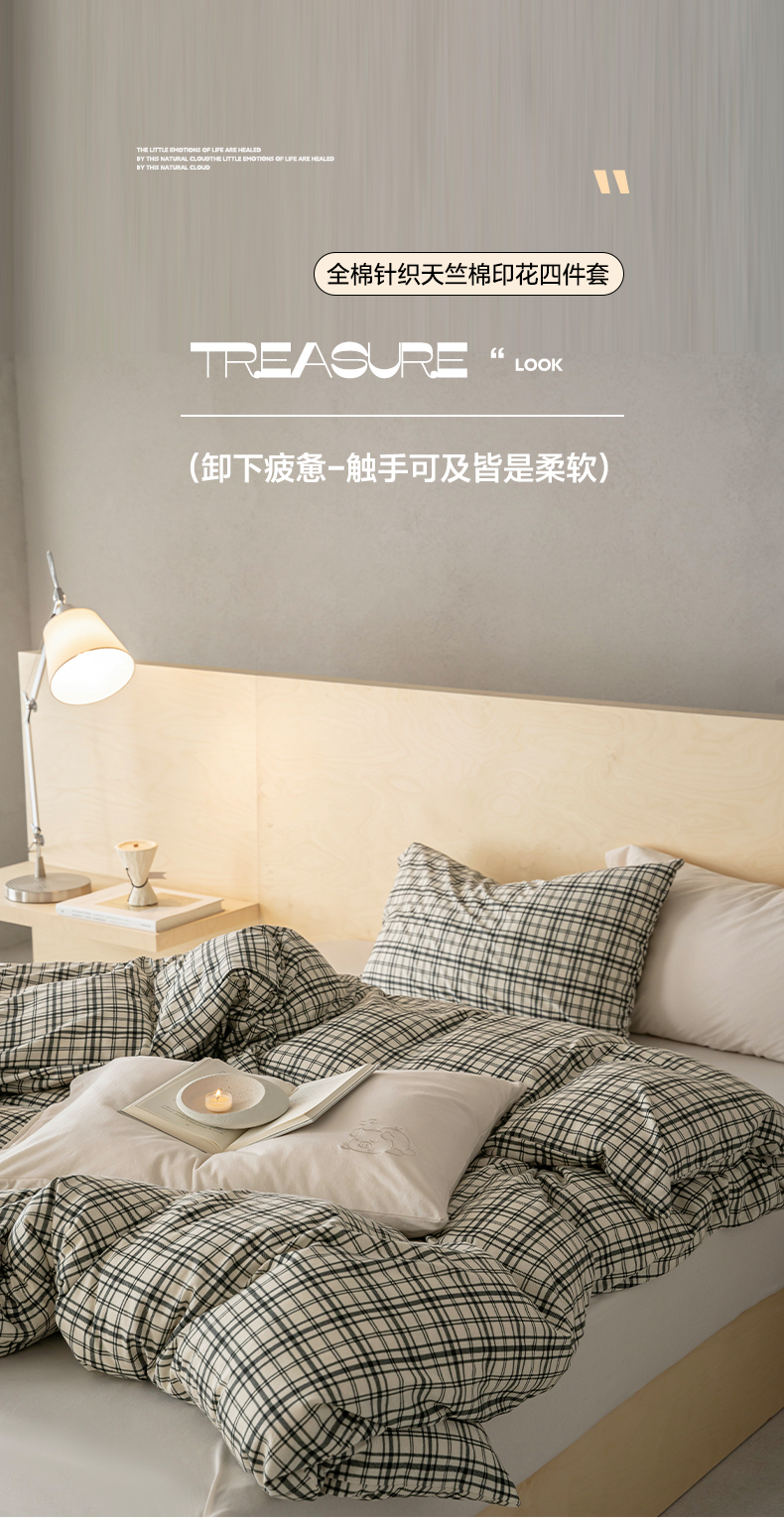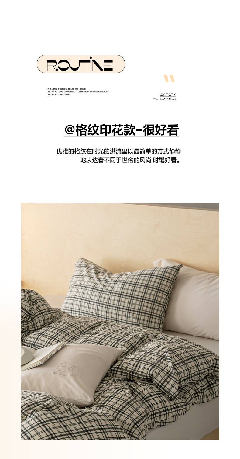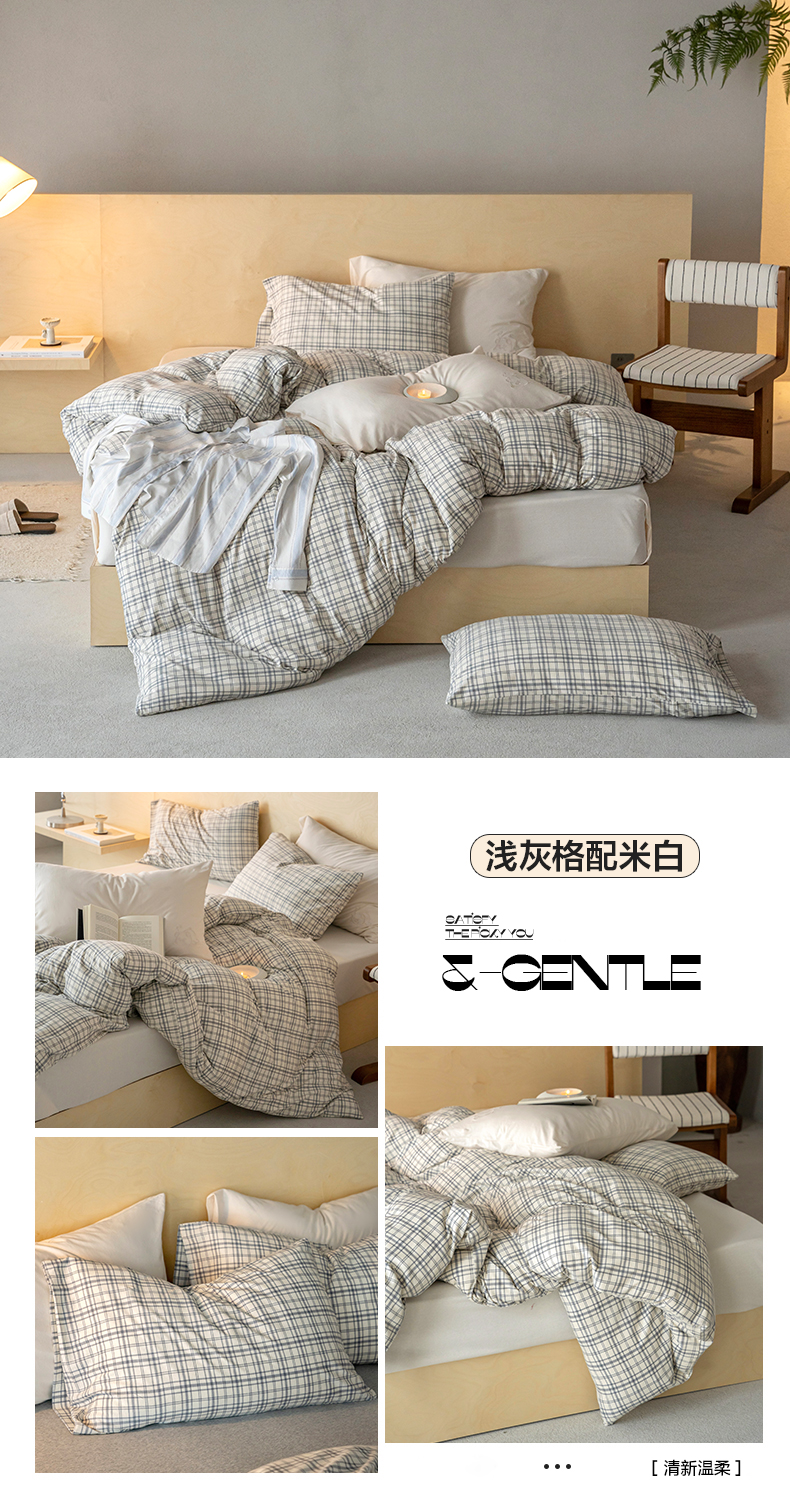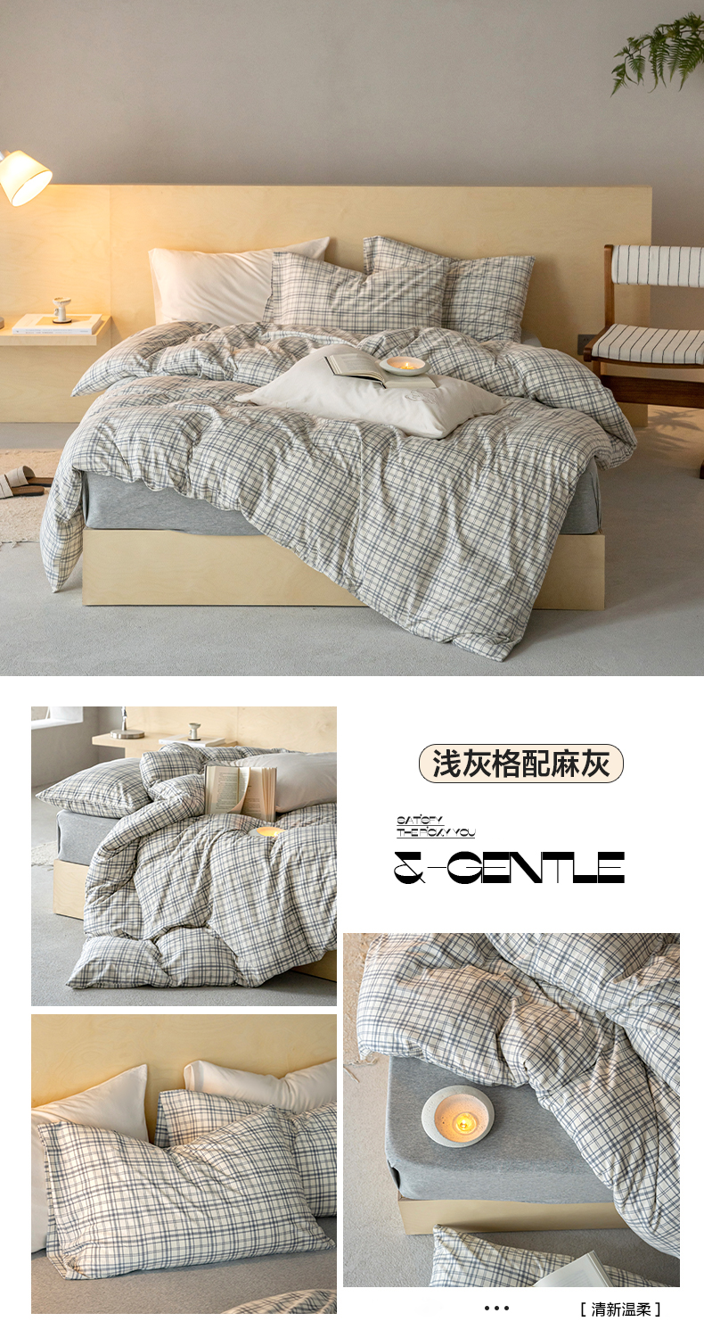 当前位置: 91家纺网 > 商品网购 > 床品套件 > 四件套 > 全棉普通四件套 > 华超针织 2026新款全棉天竺棉针织格子印花四件套 深灰格配米白