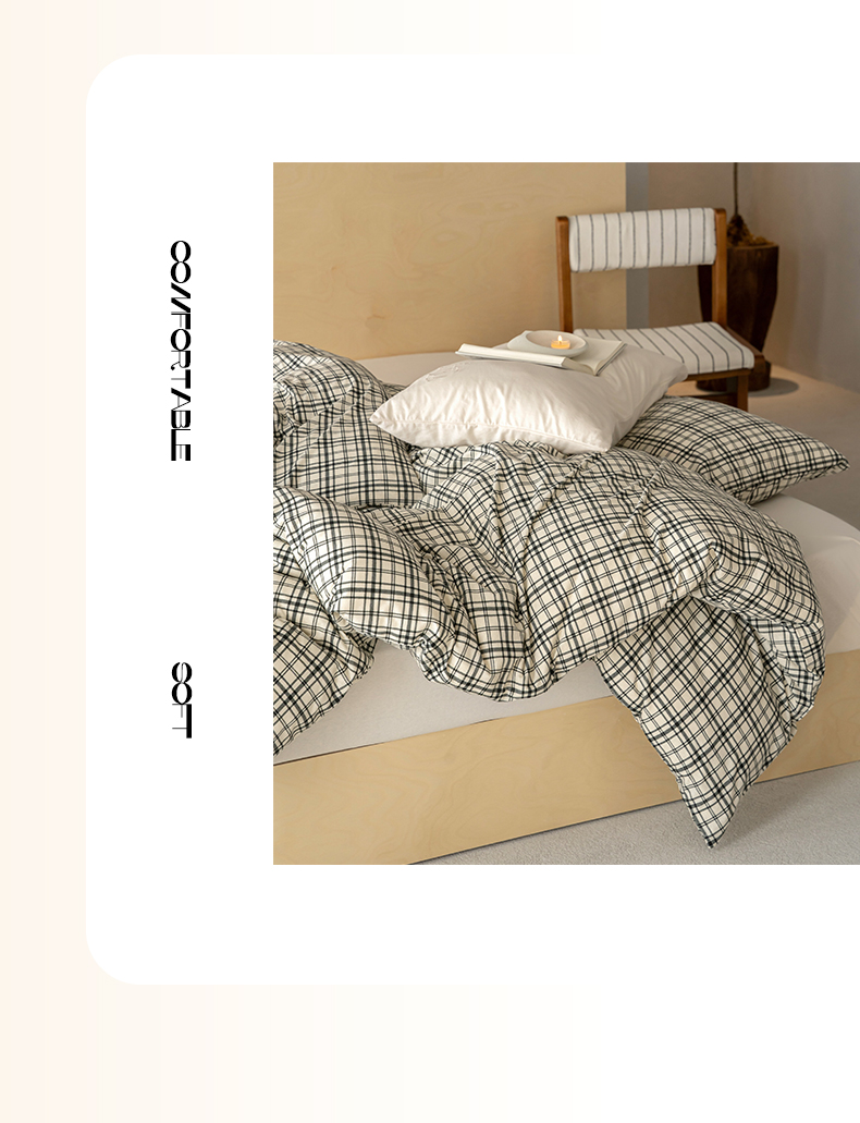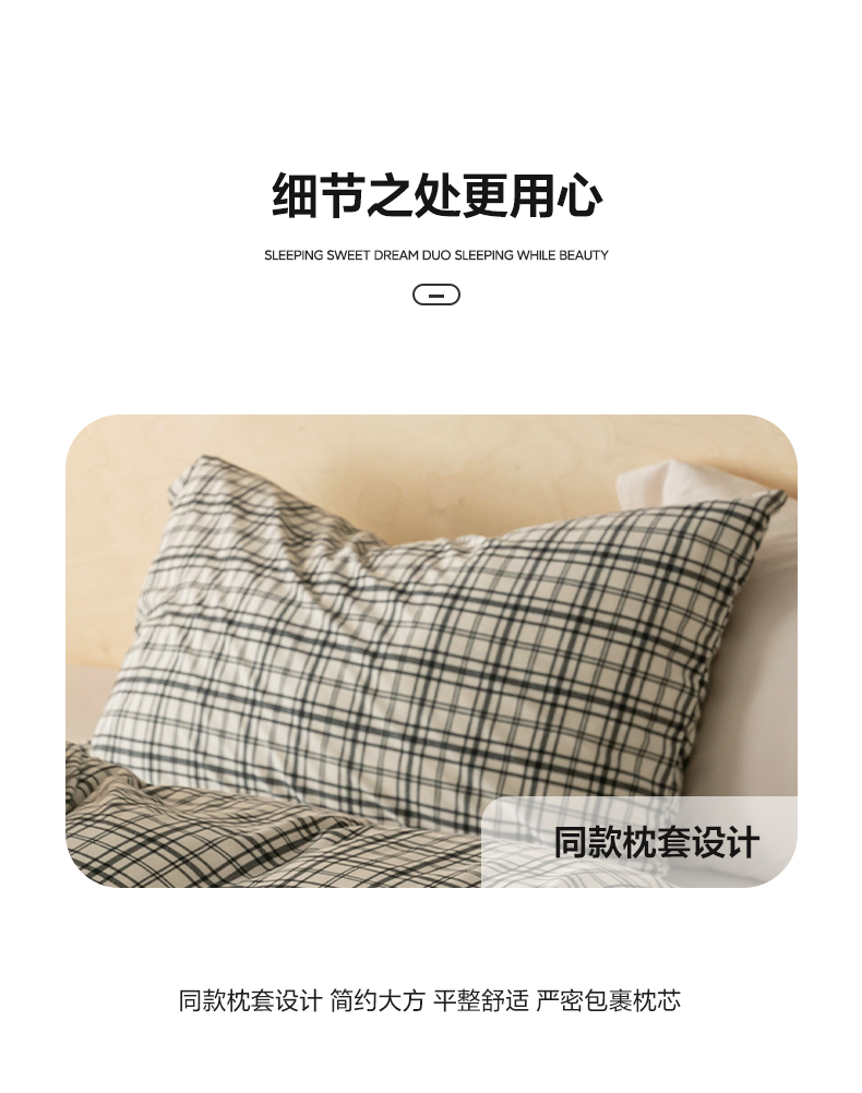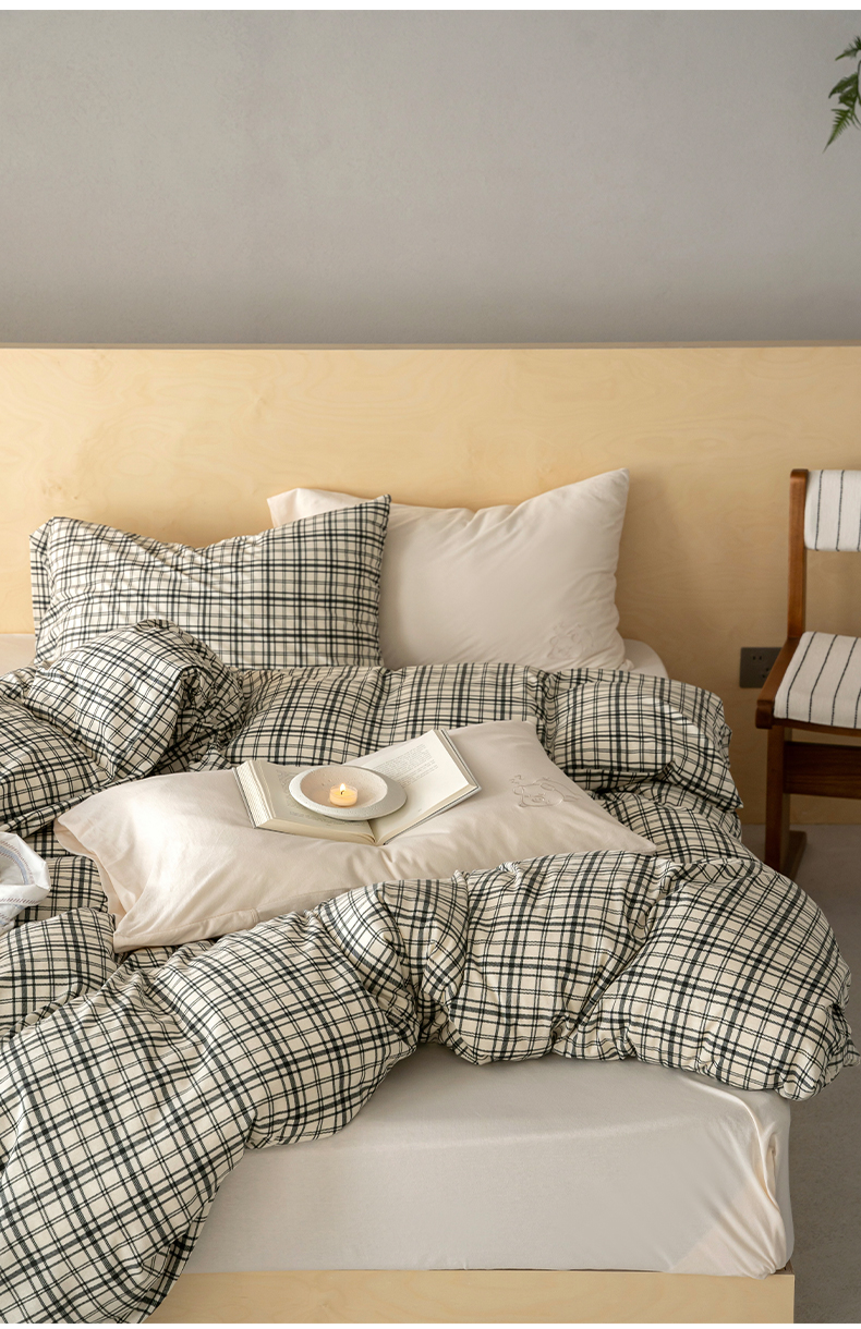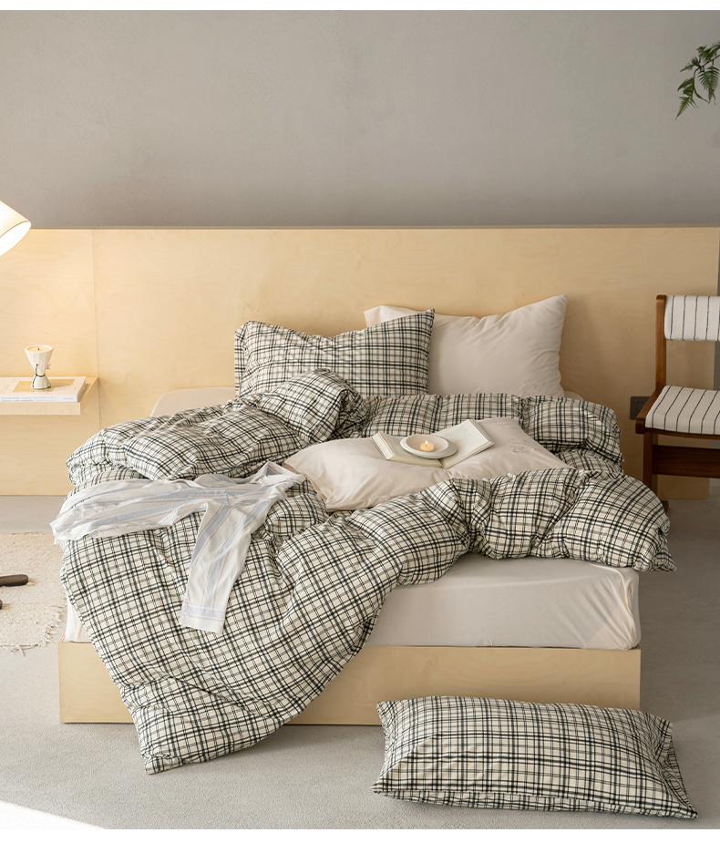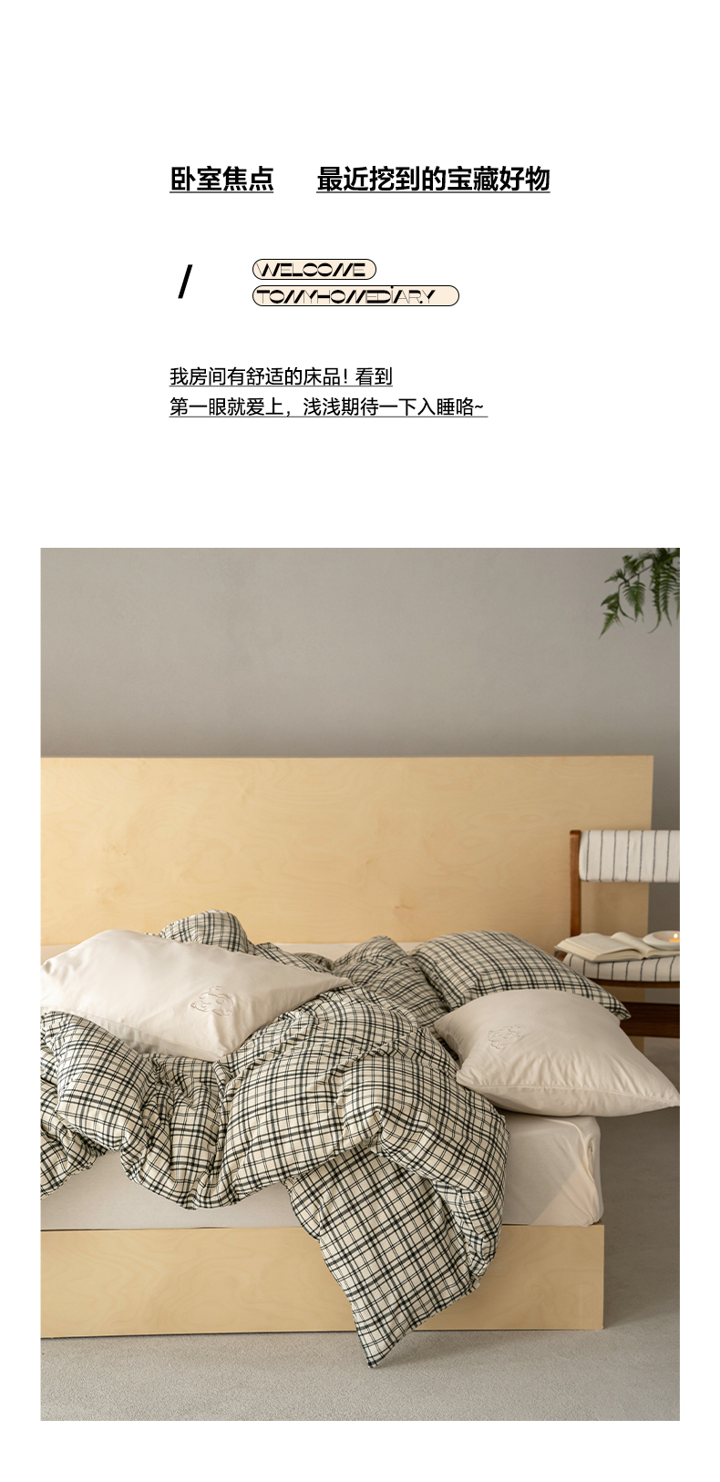 当前位置: 91家纺网 > 商品网购 > 床品套件 > 四件套 > 全棉普通四件套 > 华超针织 2026新款全棉天竺棉针织格子印花四件套 深灰格配米白