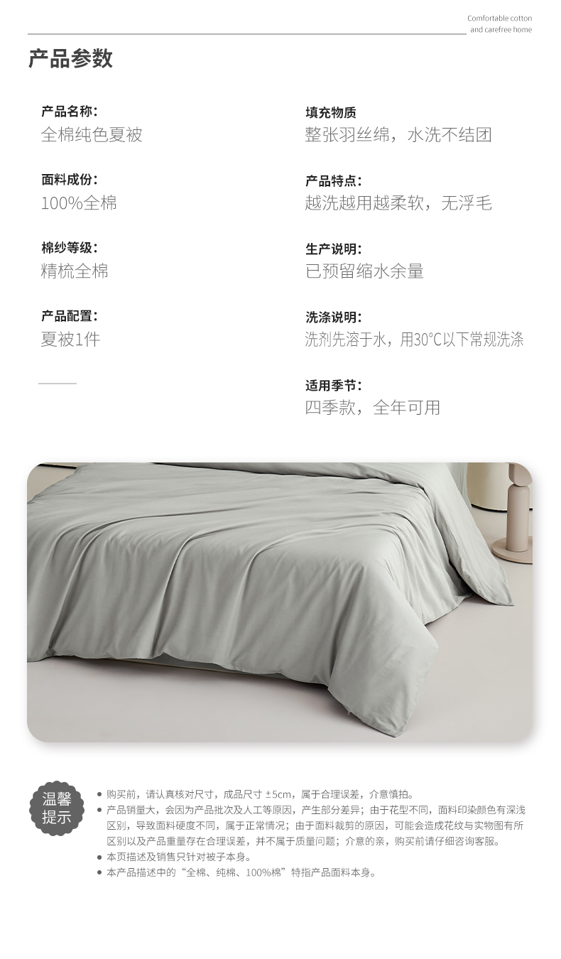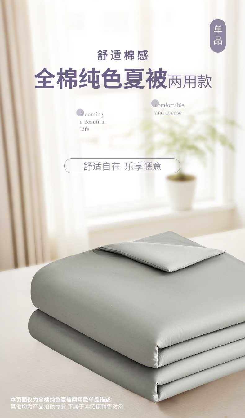 商品名称:元元家居(元元被业) 2026新款全棉纯棉13372纯色两用夏被夏凉被空调被 雅灰