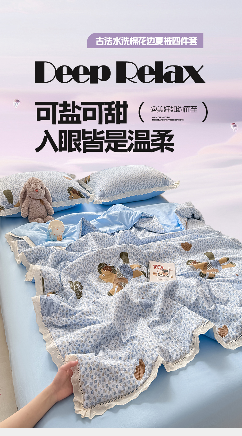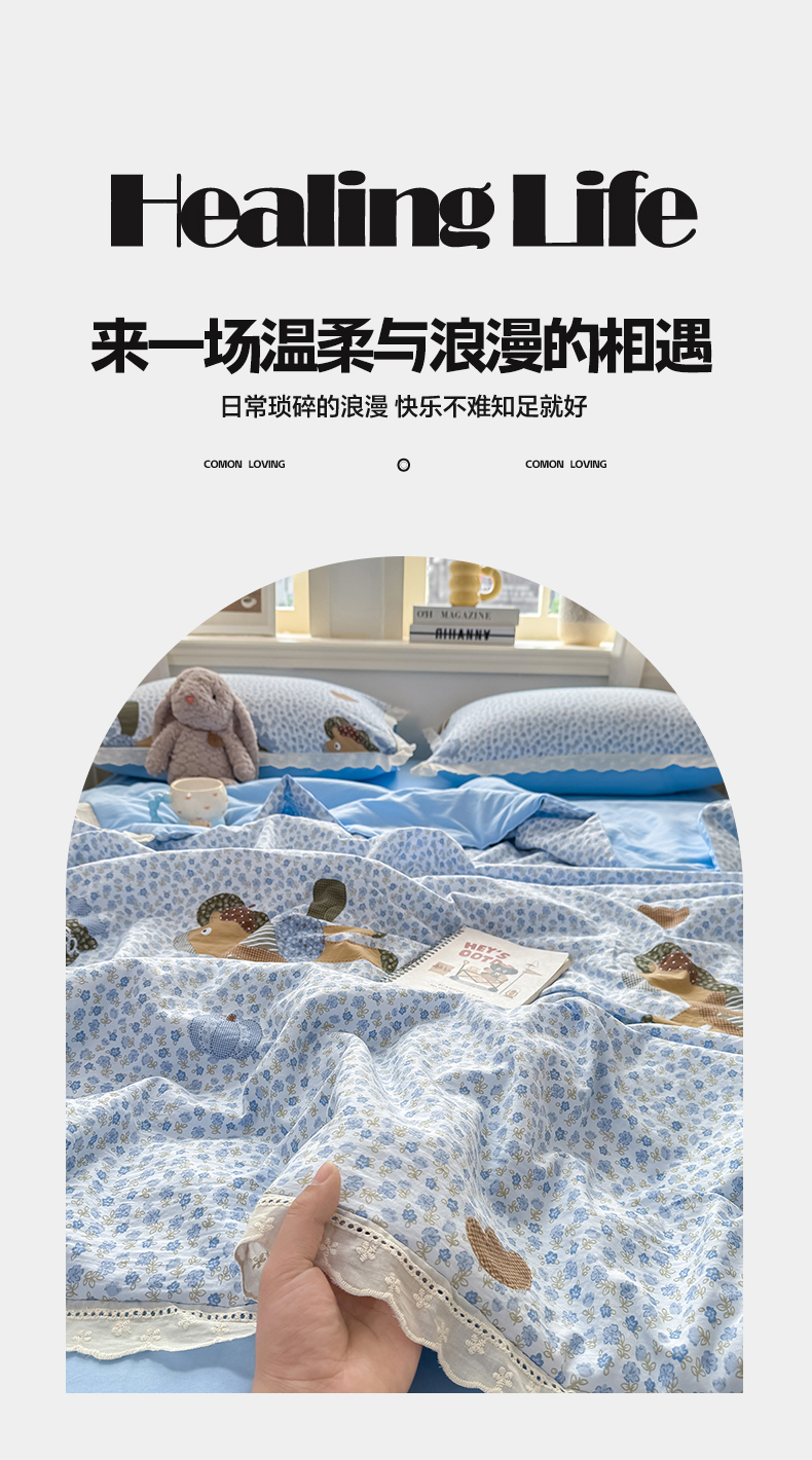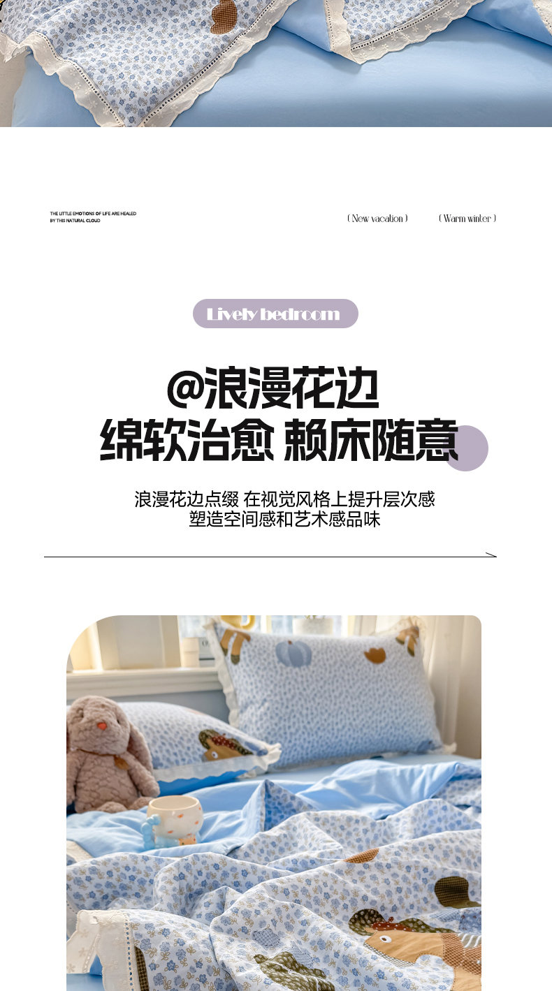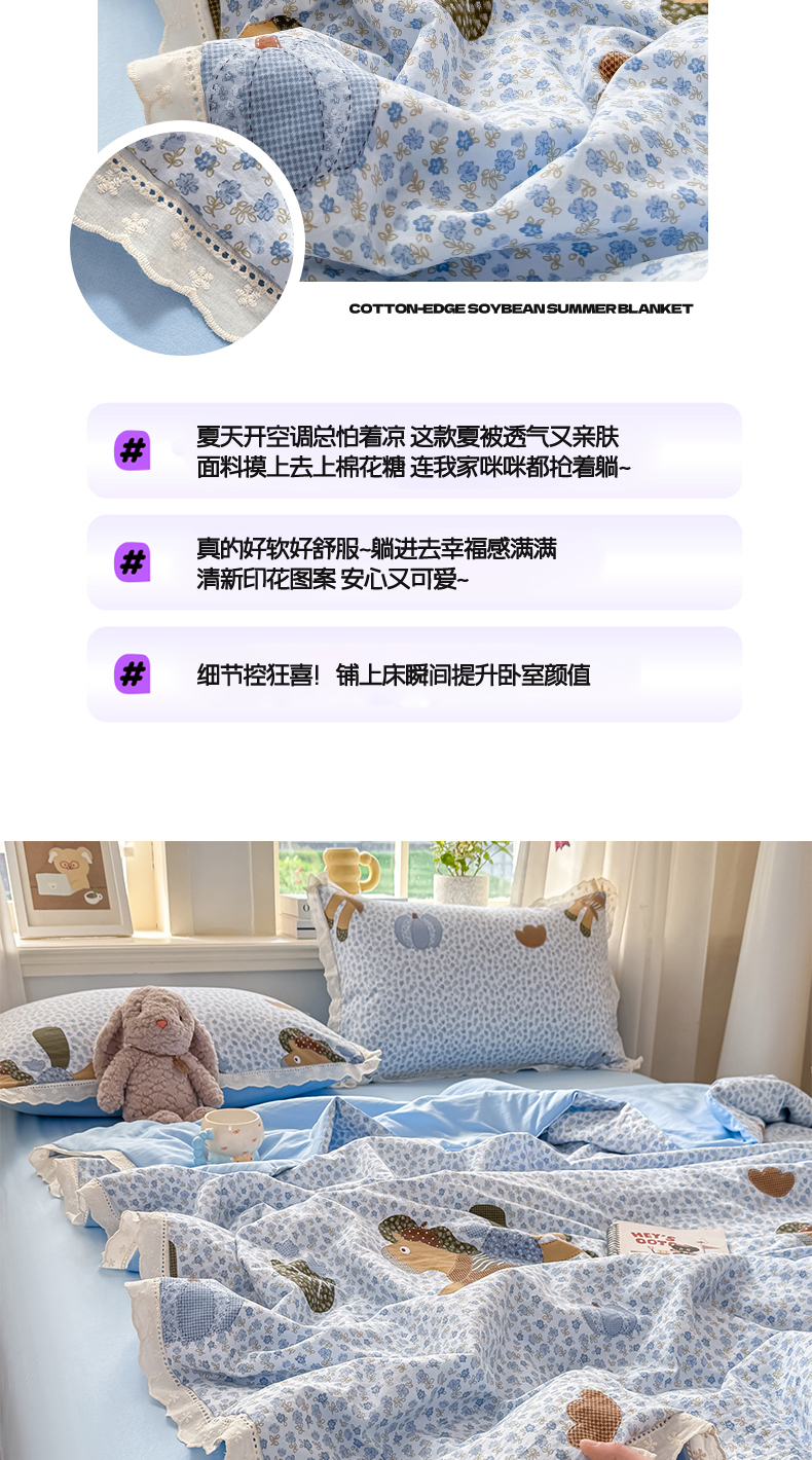 (总)憨豆家纺 2026春夏新款古法仿棉夏被四件套镂空花边大板印花夏凉被空调被(含抗菌纤维),采菇兔-粉,一束繁花,安娜花园,采菇兔-灰,花之邂逅,梦马生花,情同手足,小熊烂漫