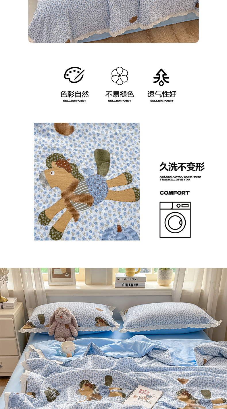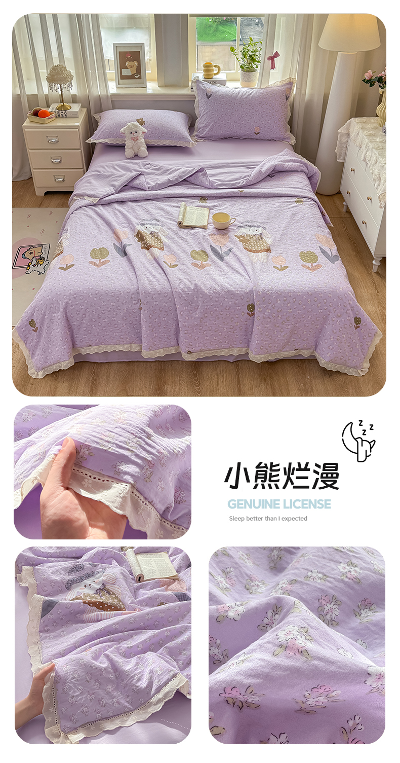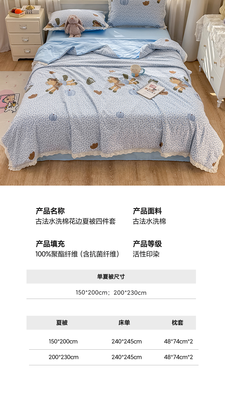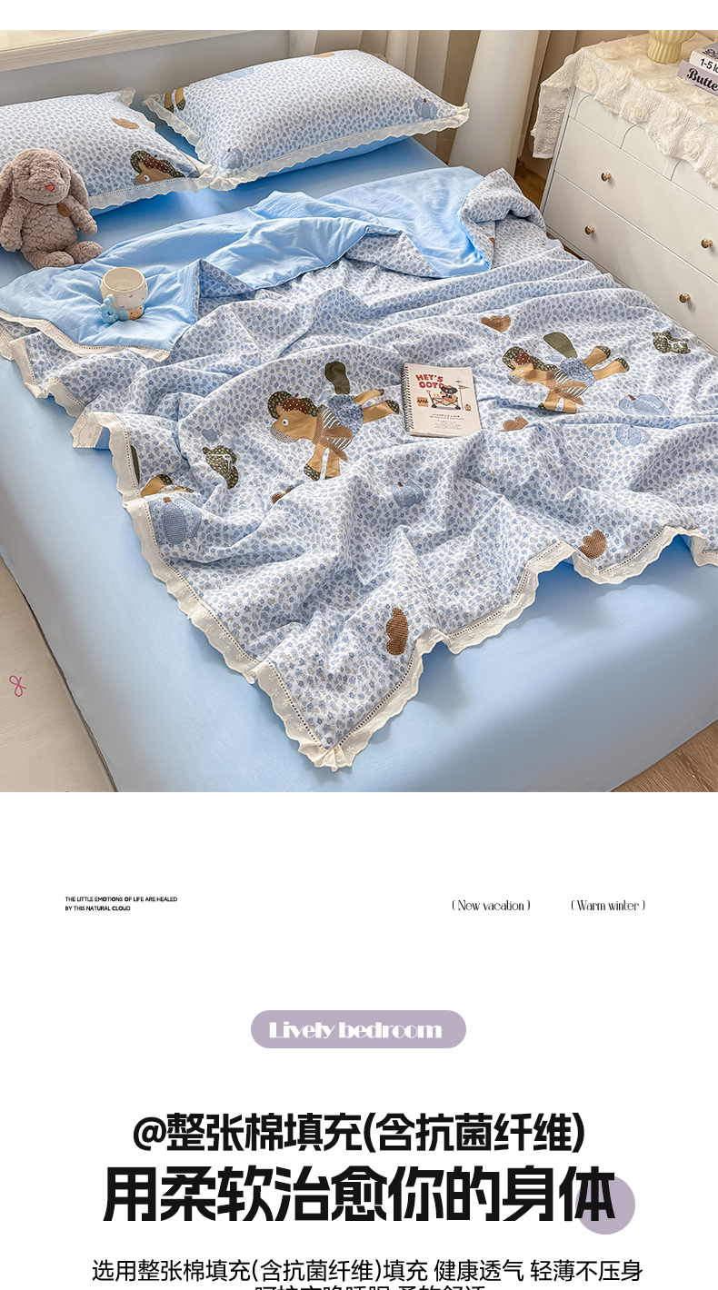(总)憨豆家纺 2026春夏新款古法仿棉夏被四件套镂空花边大板印花夏凉被空调被(含抗菌纤维),采菇兔-粉,一束繁花,安娜花园,采菇兔-灰,花之邂逅,梦马生花,情同手足,小熊烂漫