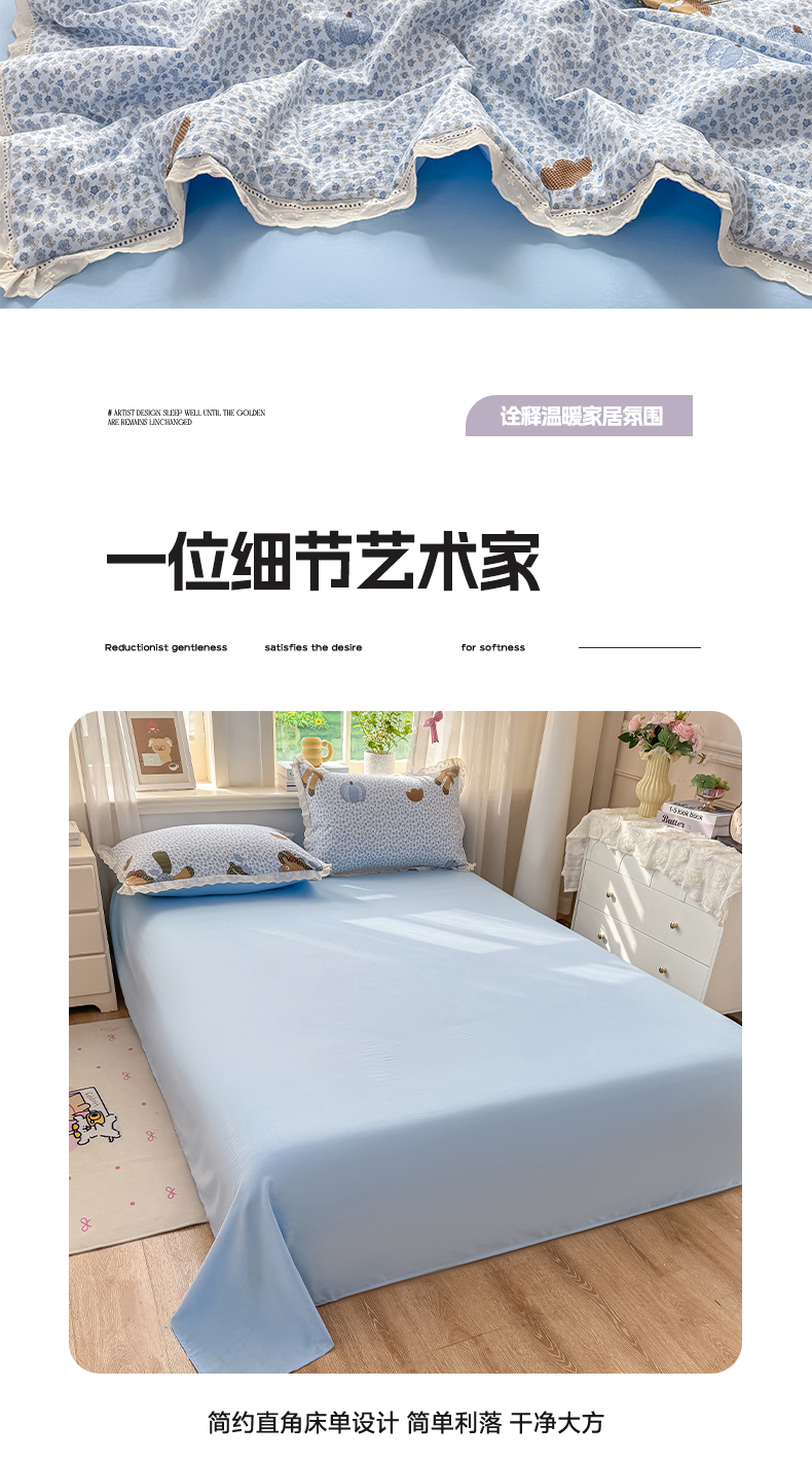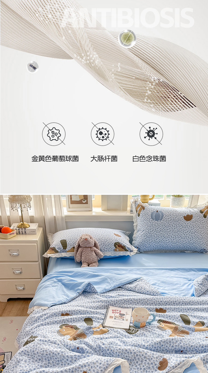 (总)憨豆家纺 2026新款水洗冰丝夏被四件套星球水洗真丝夏凉被(含抗菌棉)跨境外贸床笠款空调被,冰川蓝,冰海灰,冰甜绿,远山蓝