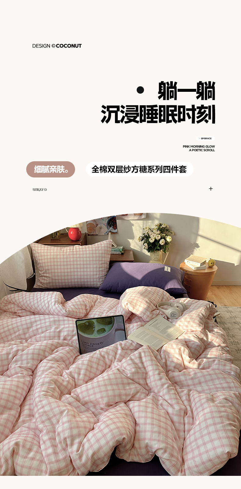 当前位置: 91家纺网 > 商品网购 > 床品套件 > 四件套 > 全棉普通四件套 > 三朵家纺 2026新款全棉纯棉双层纱方糖系列四件套 方糖-粉