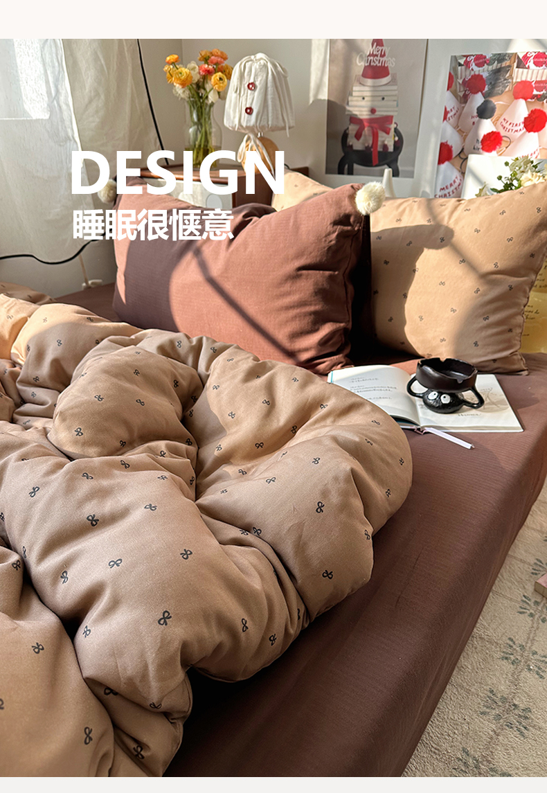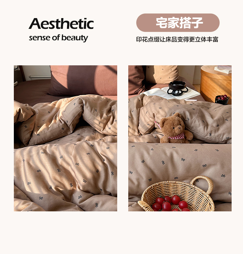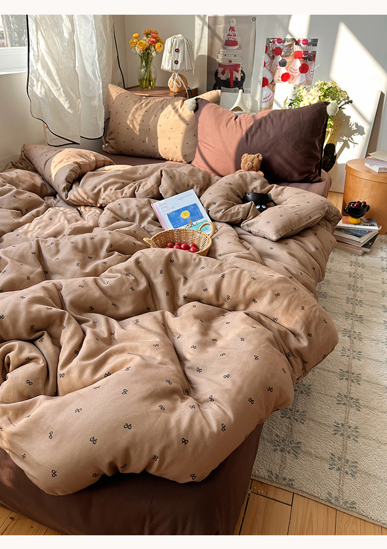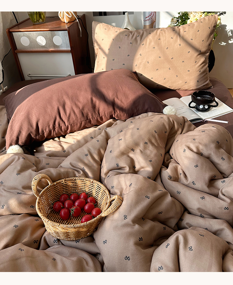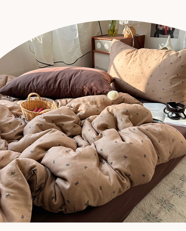 当前位置: 91家纺网 > 商品网购 > 床品套件 > 四件套 > 全棉普通四件套 > 三朵家纺 2026新款全棉纯棉双层纱小毛球系列四件套 蝴蝶结-咖