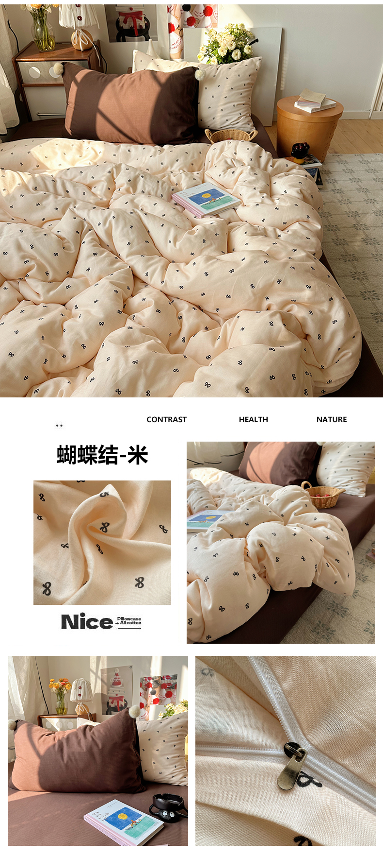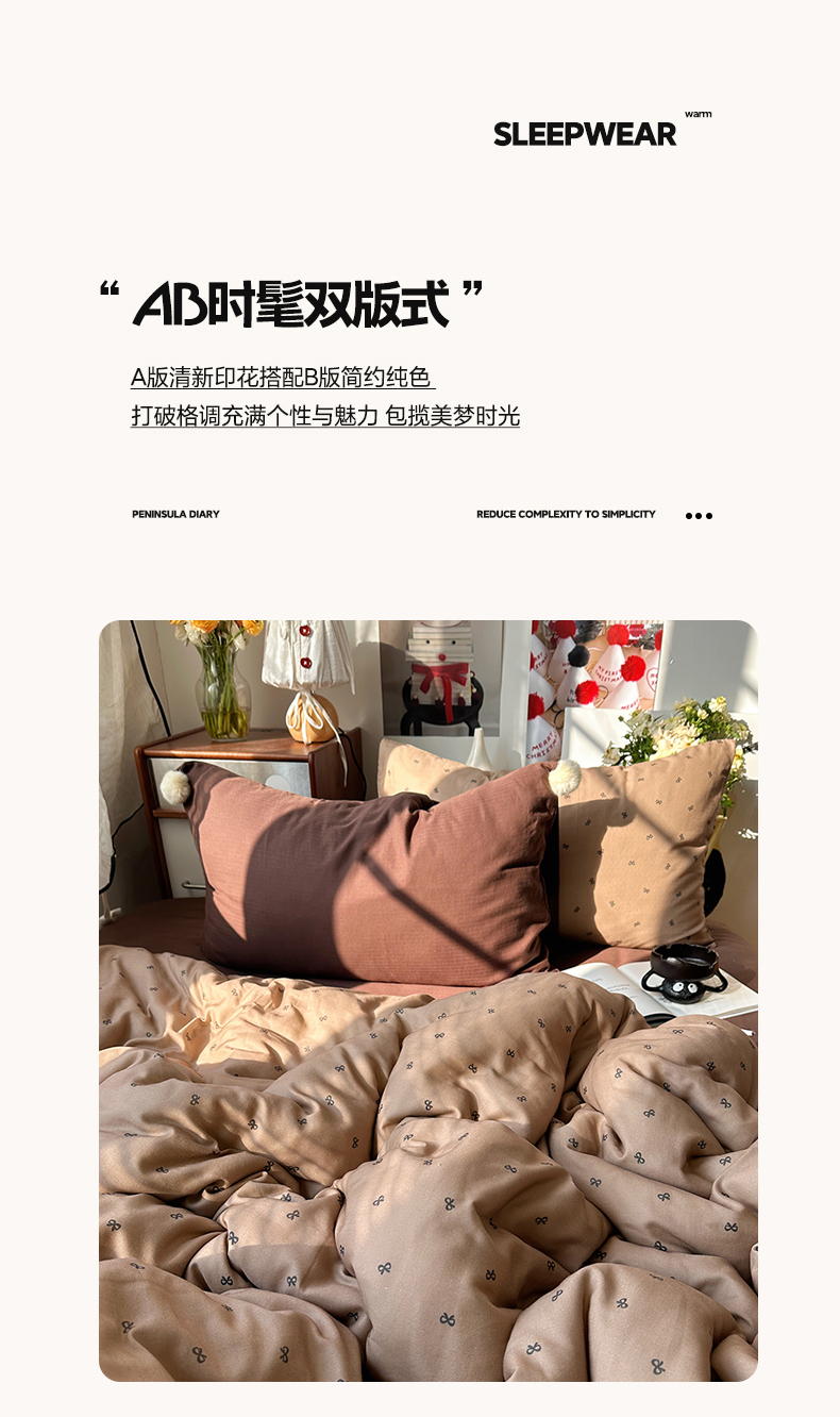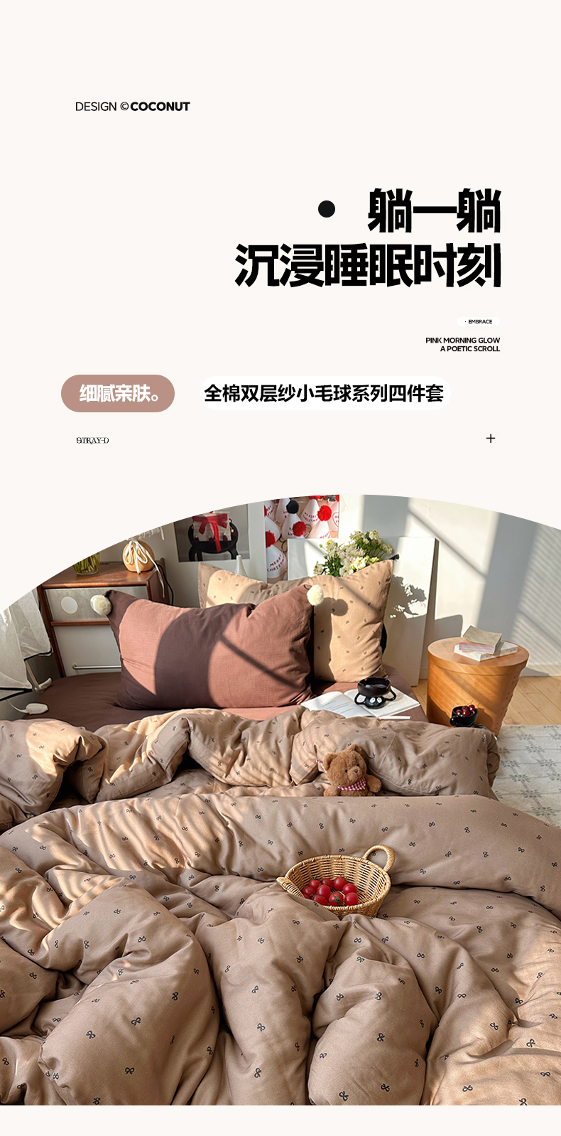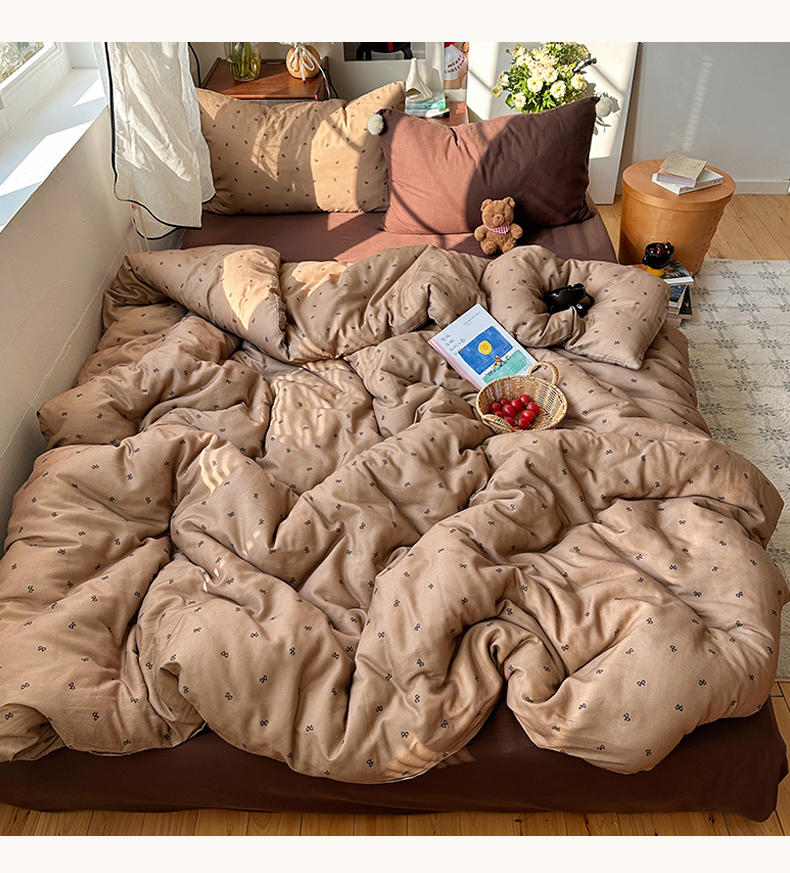 当前位置: 91家纺网 > 商品网购 > 床品套件 > 四件套 > 全棉普通四件套 > 三朵家纺 2026新款全棉纯棉双层纱小毛球系列四件套 蝴蝶结-咖