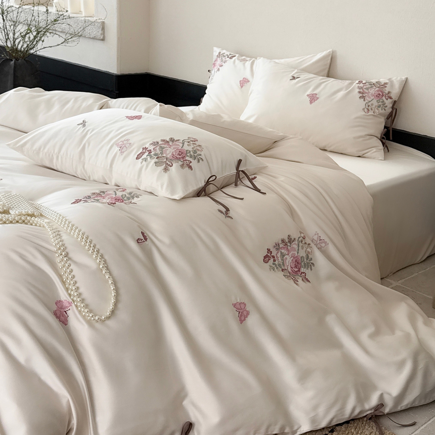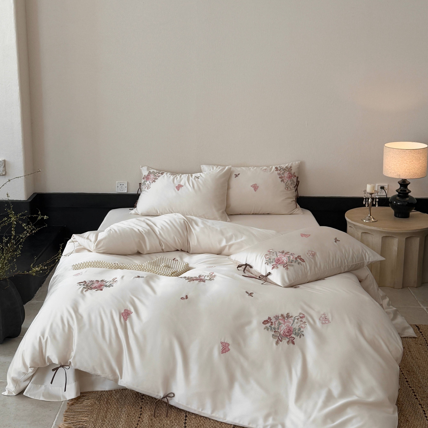 佳汐蓝家纺 2026春夏新款长绒棉纯棉刺绣四件套-时光织锦 时光织锦-富士白