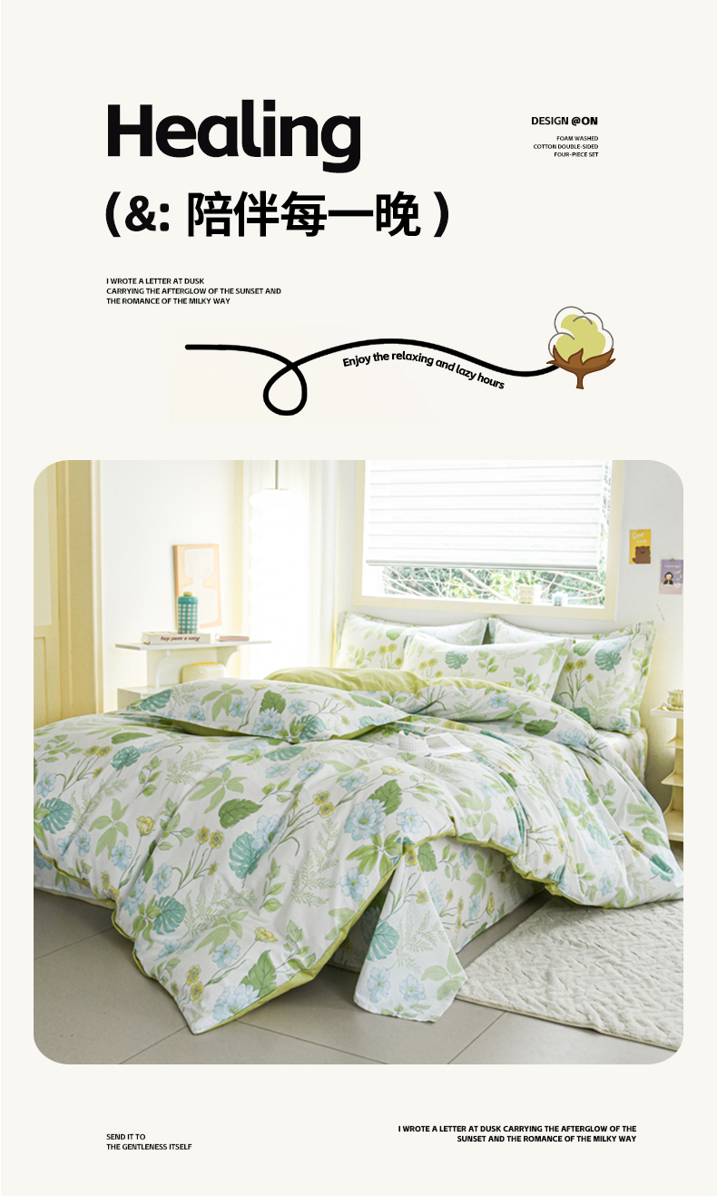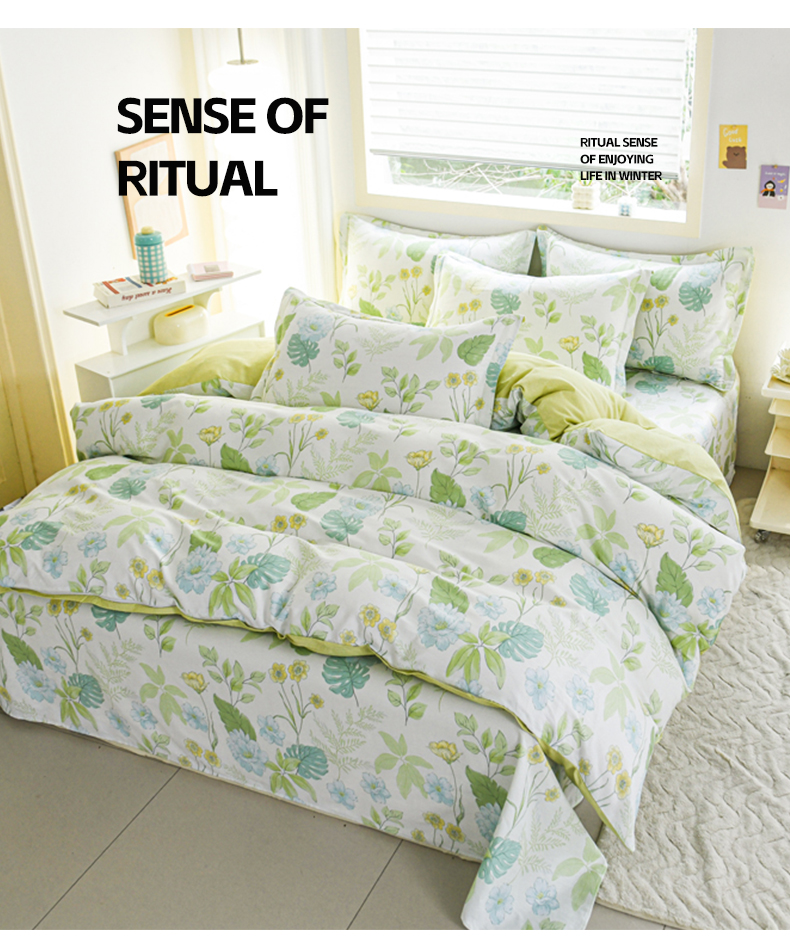 当前位置: 91家纺网 > 商品网购 > 床品套件 > 四件套 > 全棉普通四件套 > 缘舒家纺 2026新款全棉纯棉印花四件套 叶柔-绿