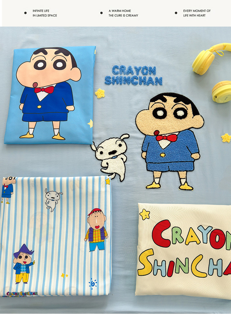 当前位置: 91家纺网 > 商品网购 > 床品套件 > 四件套 > 毛巾绣四件套 > 一霖家纺 2026新款正品蜡笔小新高克重云朵棉毛巾绣数码枕套系列四件套热推款 小新大家族