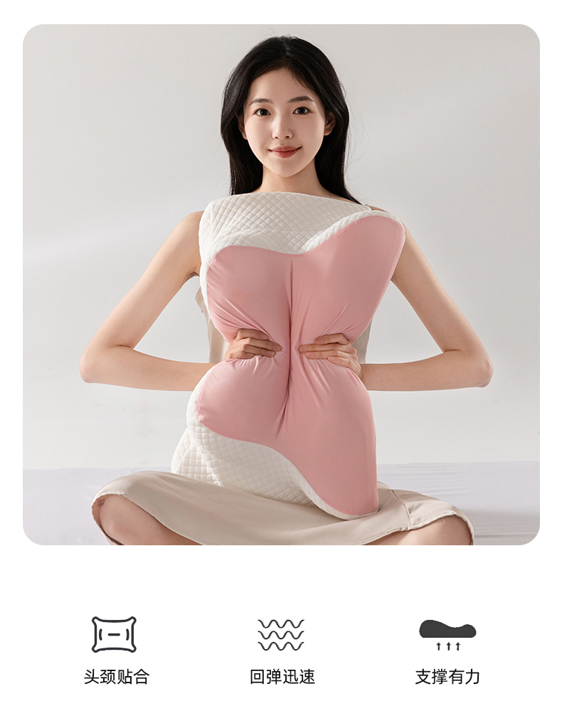 (总)七夜居 2026新款跨境支撑性牛角枕飞机枕碟形枕枕头慢回弹枕芯,粉色,灰色,紫色