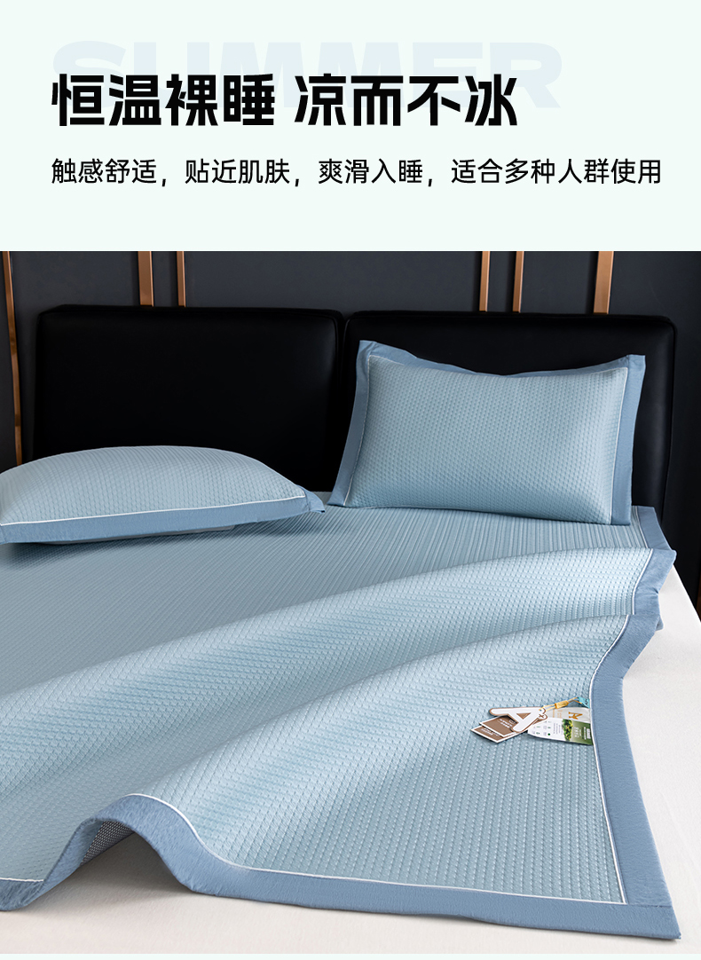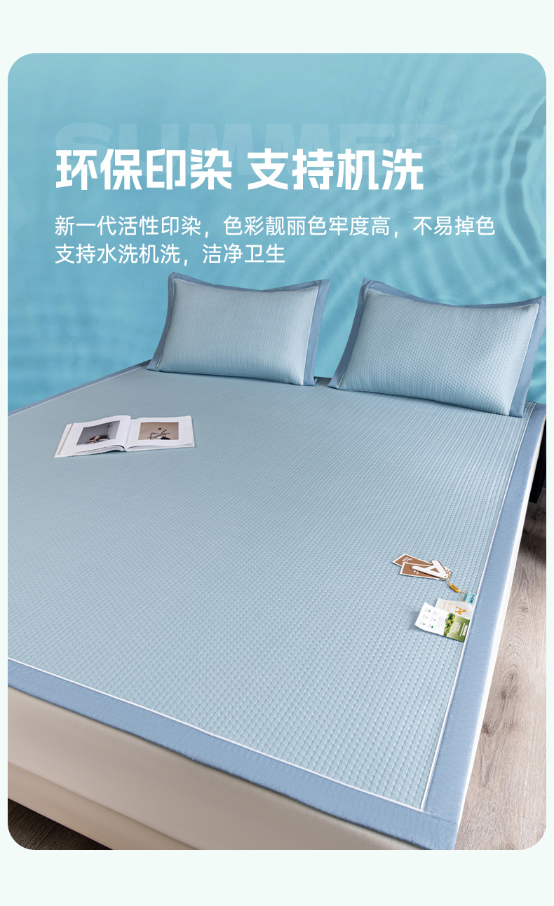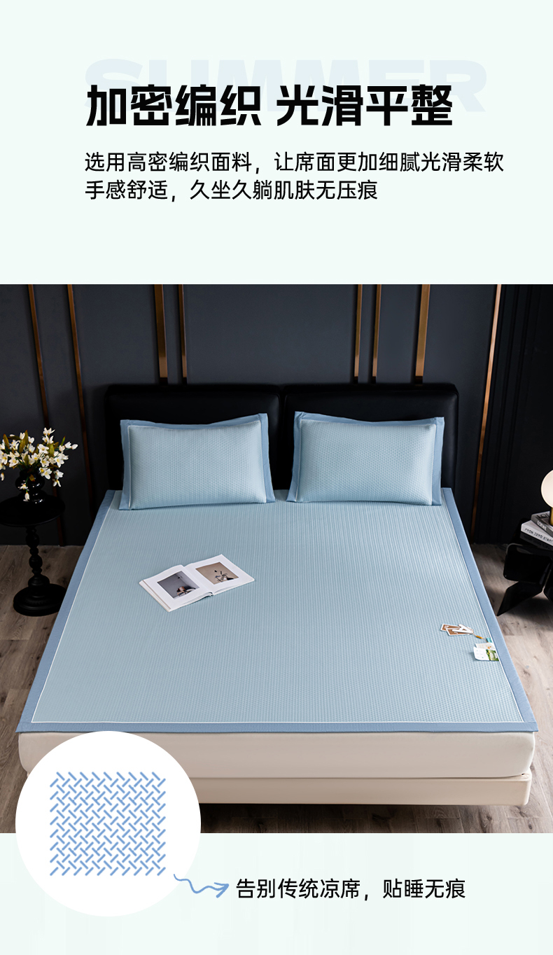(总)2023新款超精密冰丝席-小斜纹系列-床笠款藤席凉席竹席,粉色,蓝色,绿色,银灰