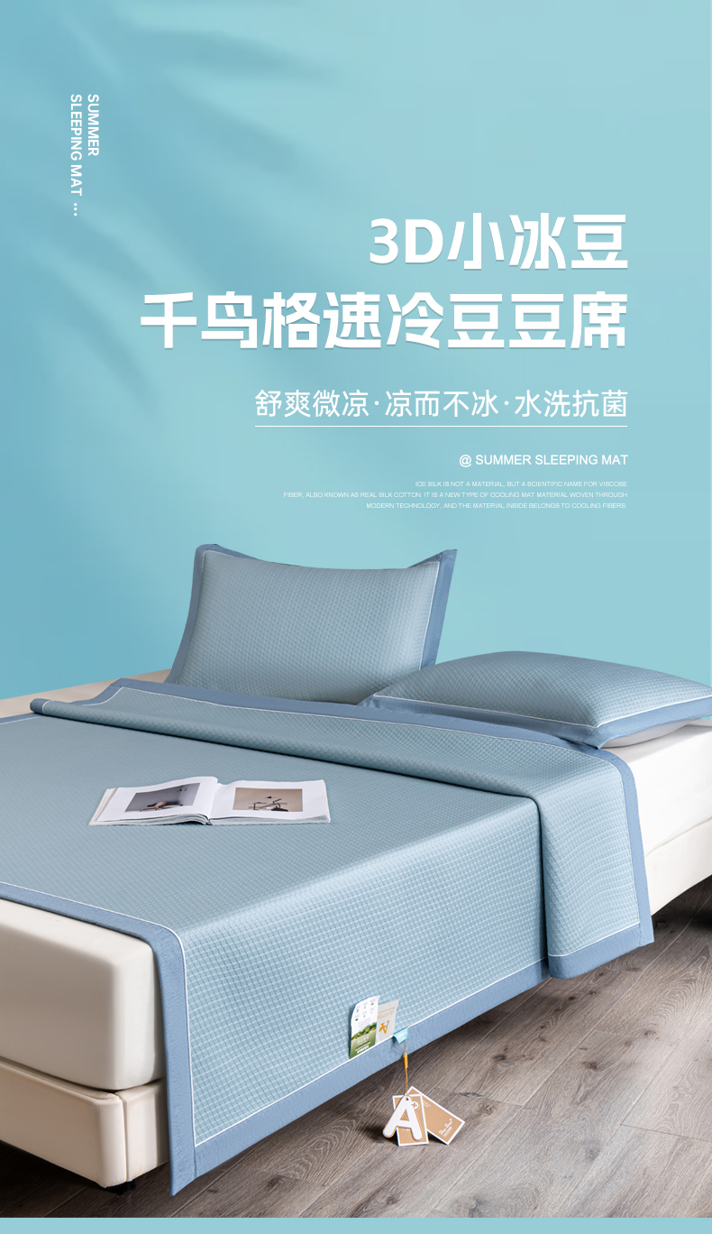 小牛席业 2026新款经典款-千鸟格冷感豆豆席系列 蓝色