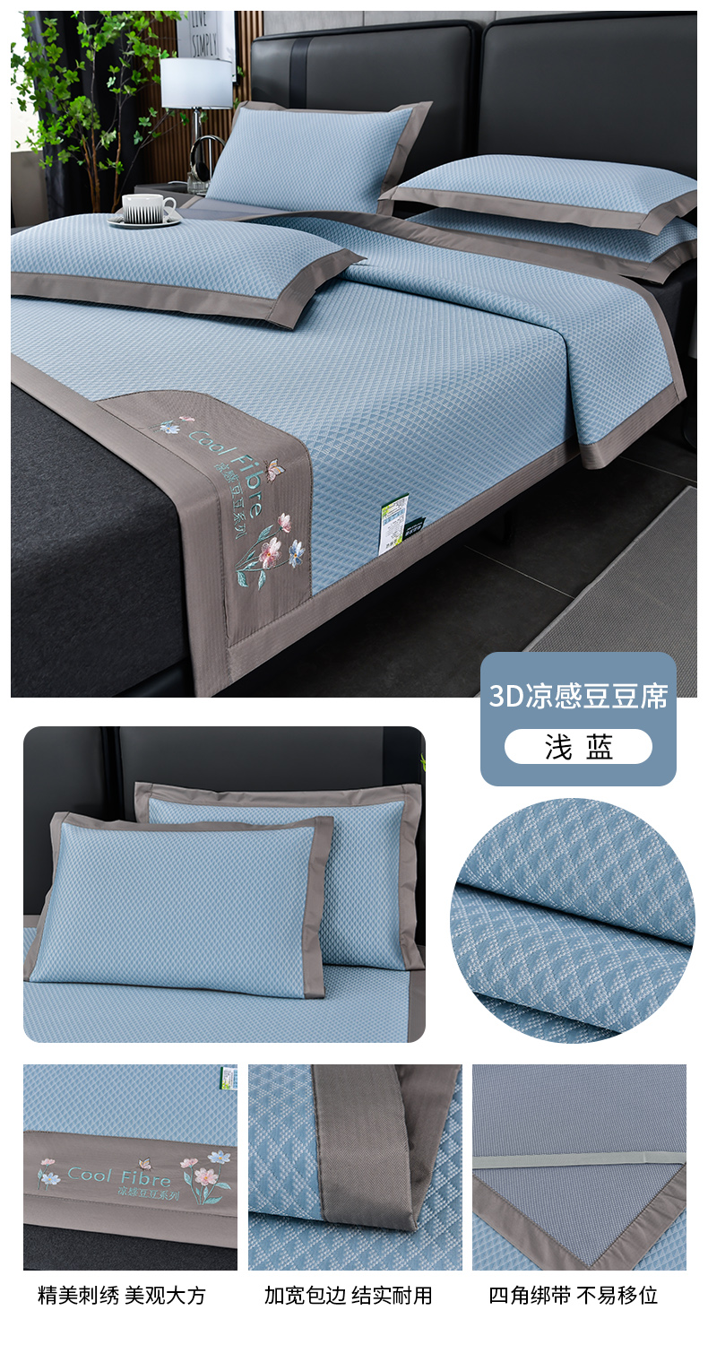(总)2023新款超精密冰丝席-小斜纹系列-床笠款藤席凉席竹席,粉色,蓝色,绿色,银灰