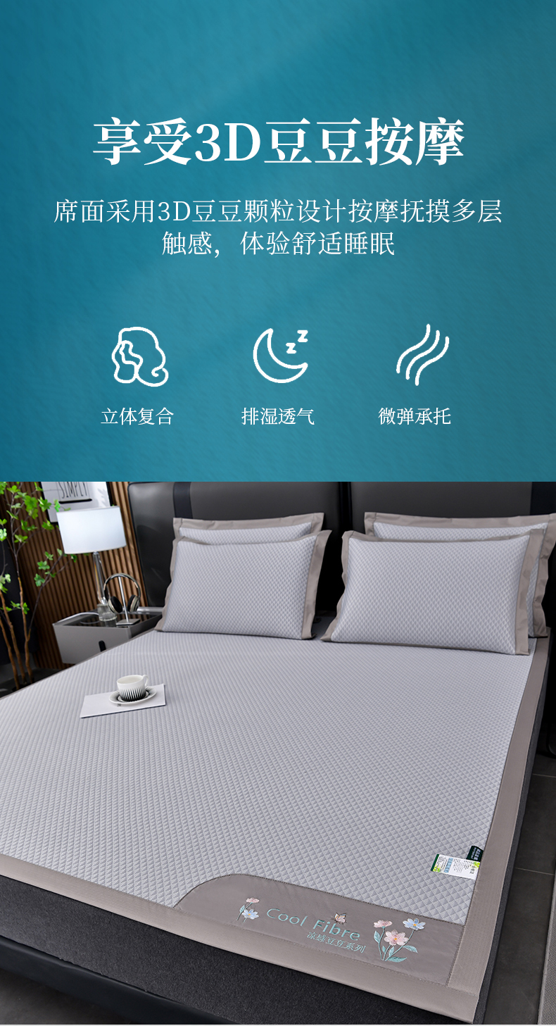 (总)小牛席业 2026新款小冰块大象凉感冰丝席凉席竹席藤席冰藤席乳胶席豆豆席,粉色,香槟,灰色,绿色,蓝色