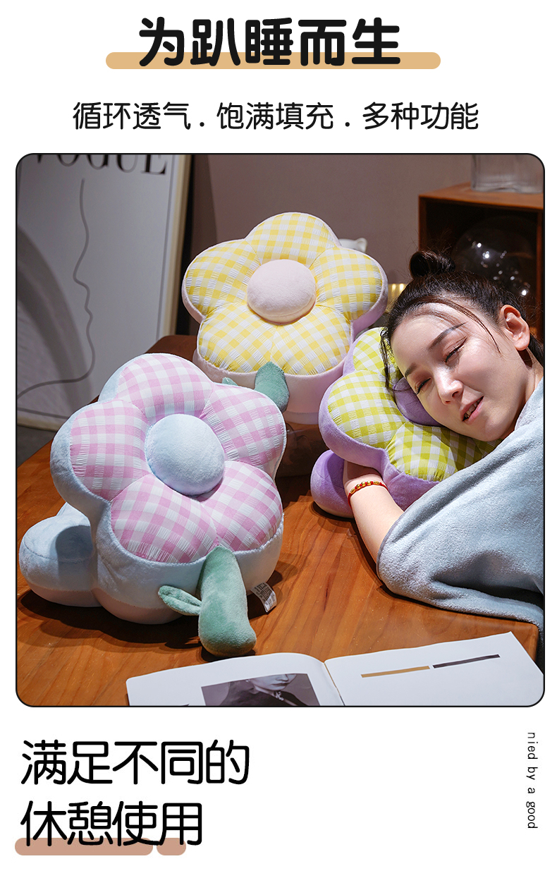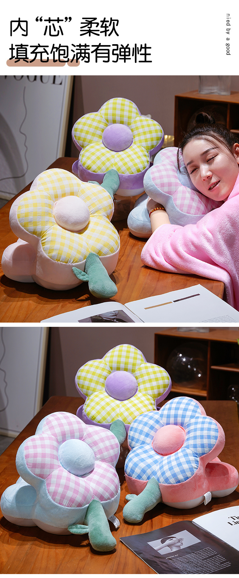 (总)仟亿莱 2026新款泡泡格花朵冰丝双面午睡枕,组合图【仅供参考 不可下单】,粉白格子,黄白格子,蓝白格子,绿白格子