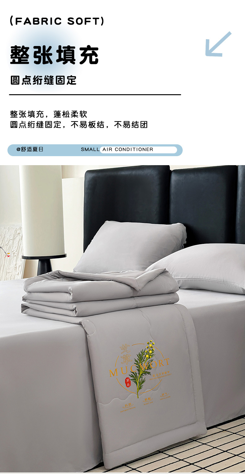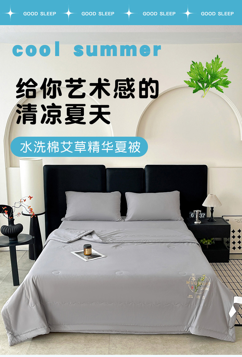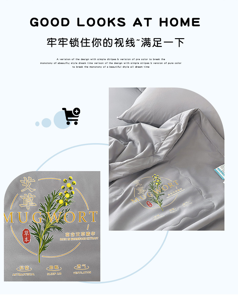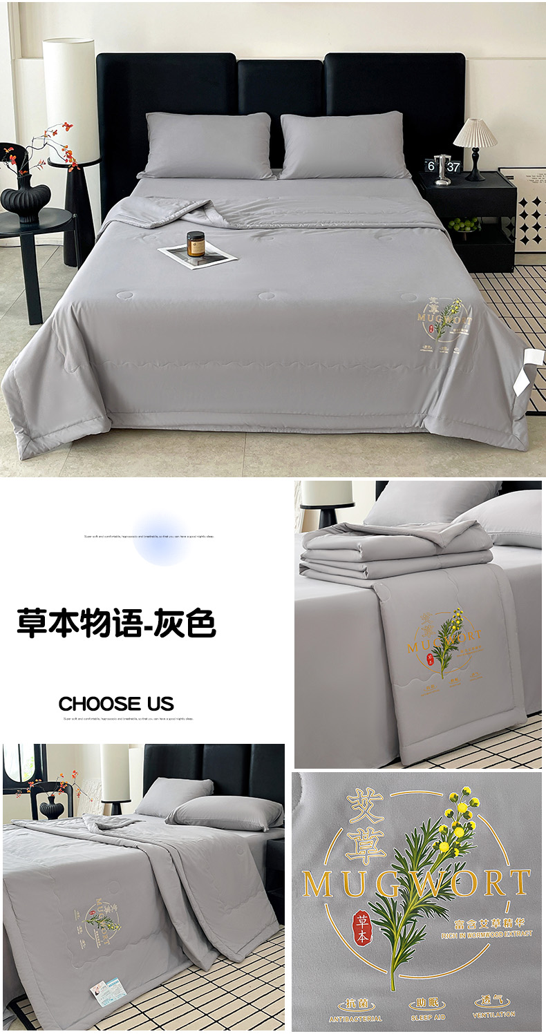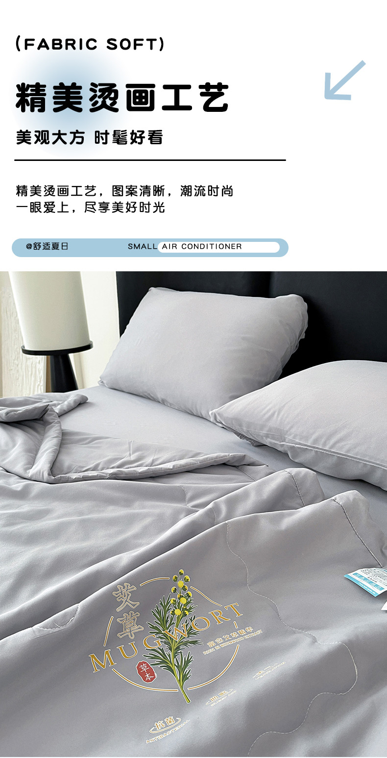 商品名称:易展家居 2026新款水洗棉艾草精华烫画款夏被 草本物语-灰色
