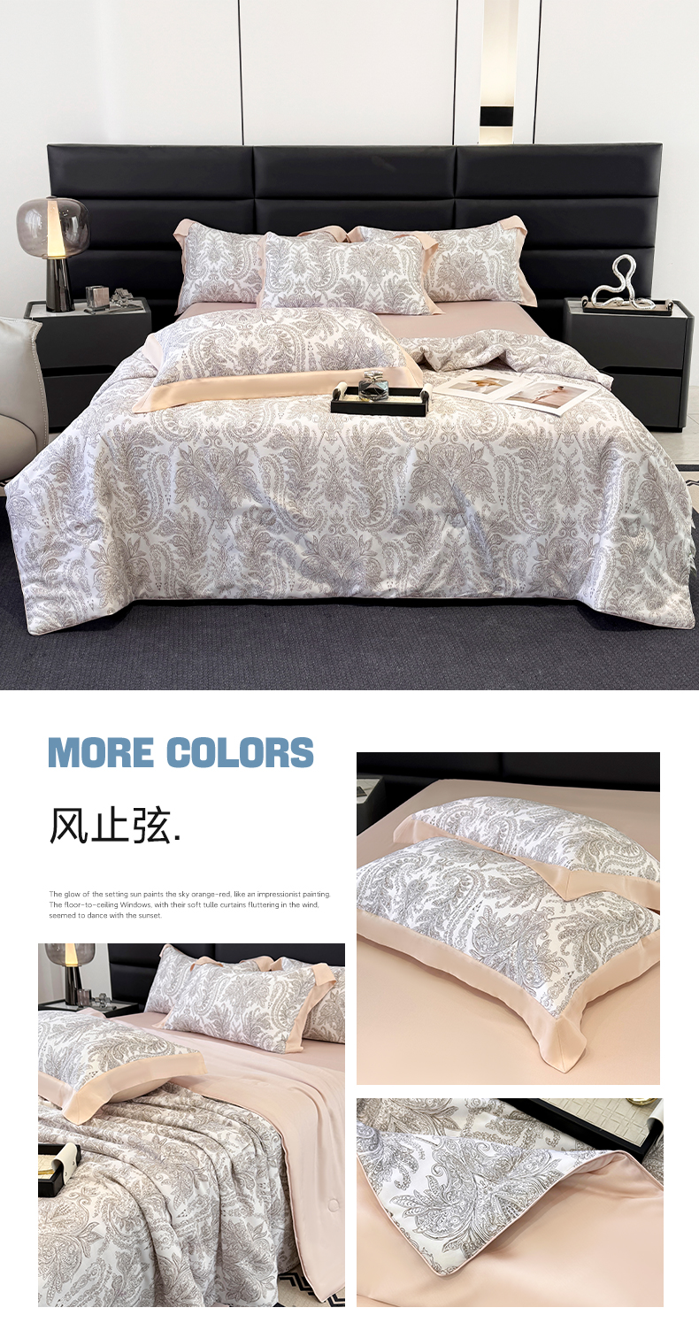 当前位置: 91家纺网 > 商品网购 > 床品套件 > 四件套 > 夏被四件套 > 宜家坊 2026春夏新款莱赛尔天丝夏被嵌绳款数码印花单夏被夏被四件套 莉格西塔