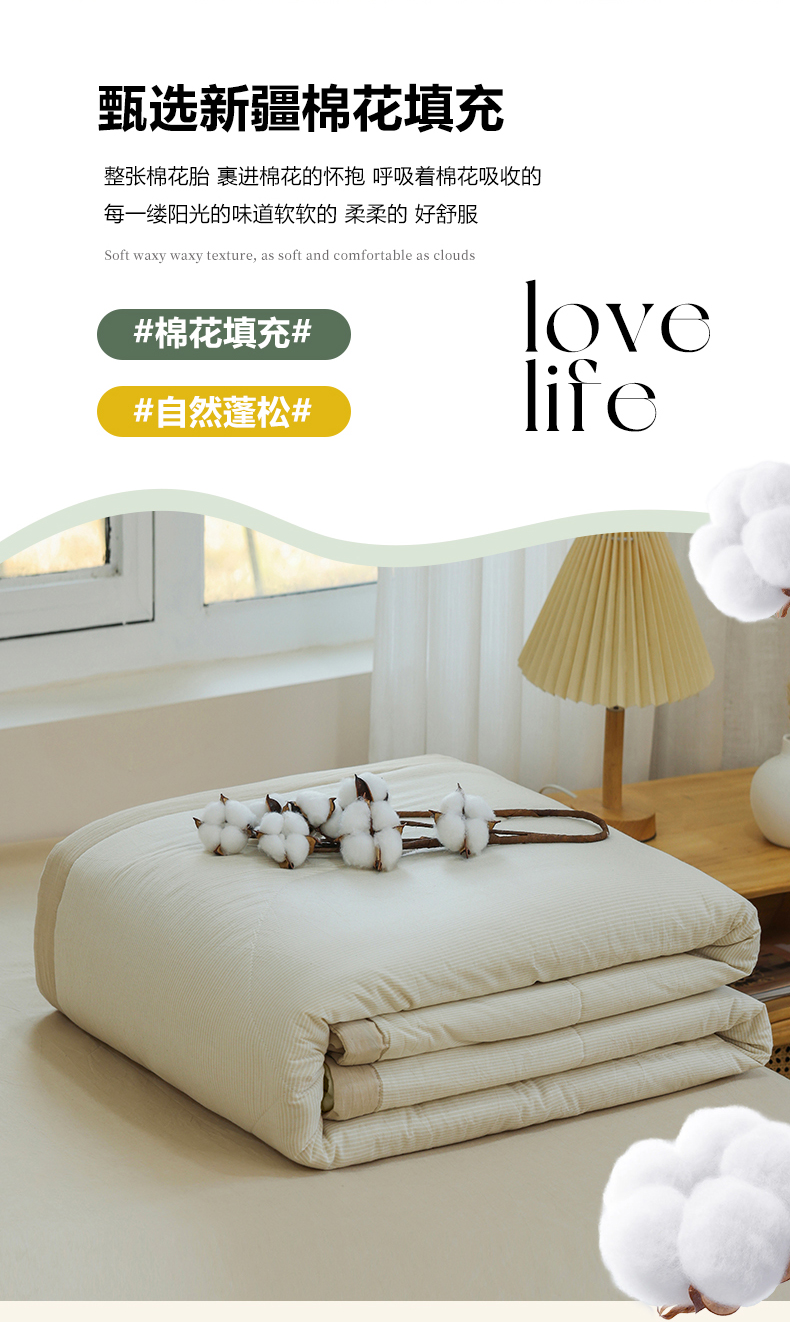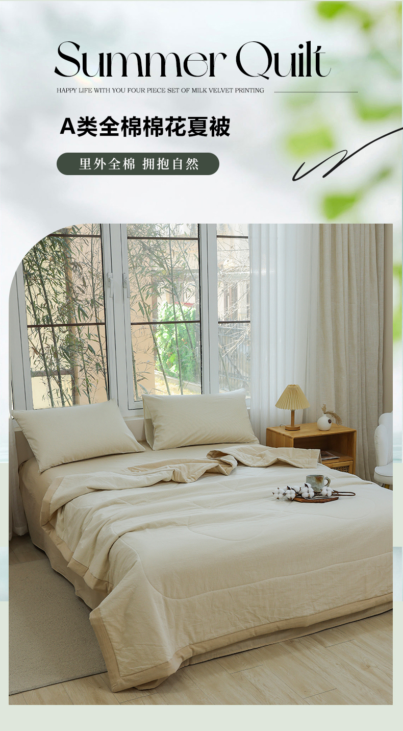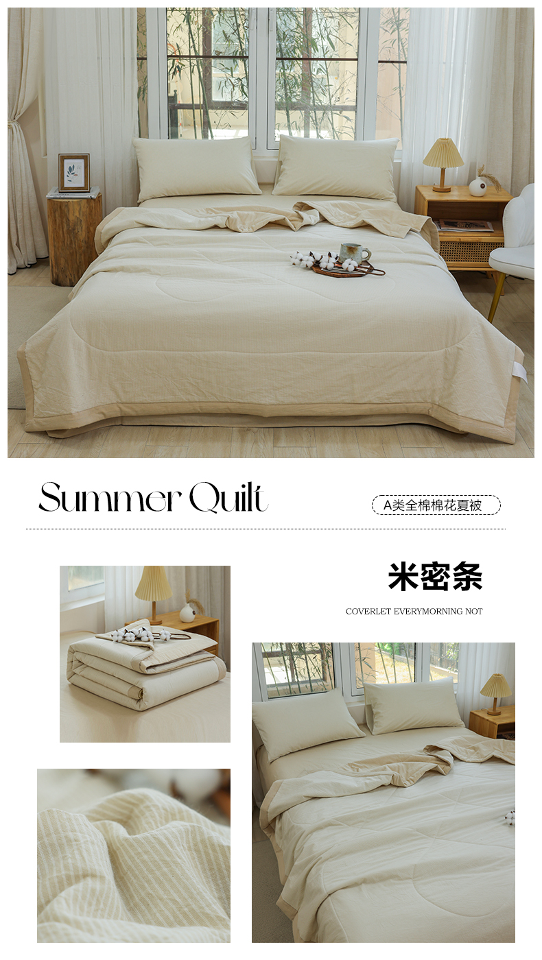 • 91家纺网 家纺一手货源 找家纺 柠萌家居 2026新款全棉色织水洗棉棉花夏被四件套里外全棉空调被 夏凉被被子被芯 米密条