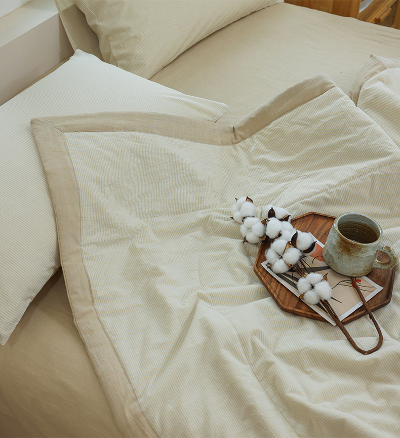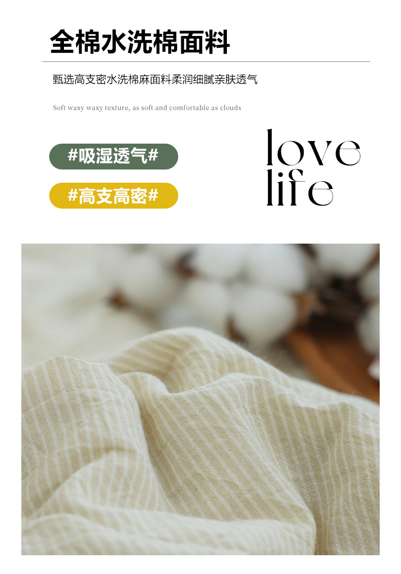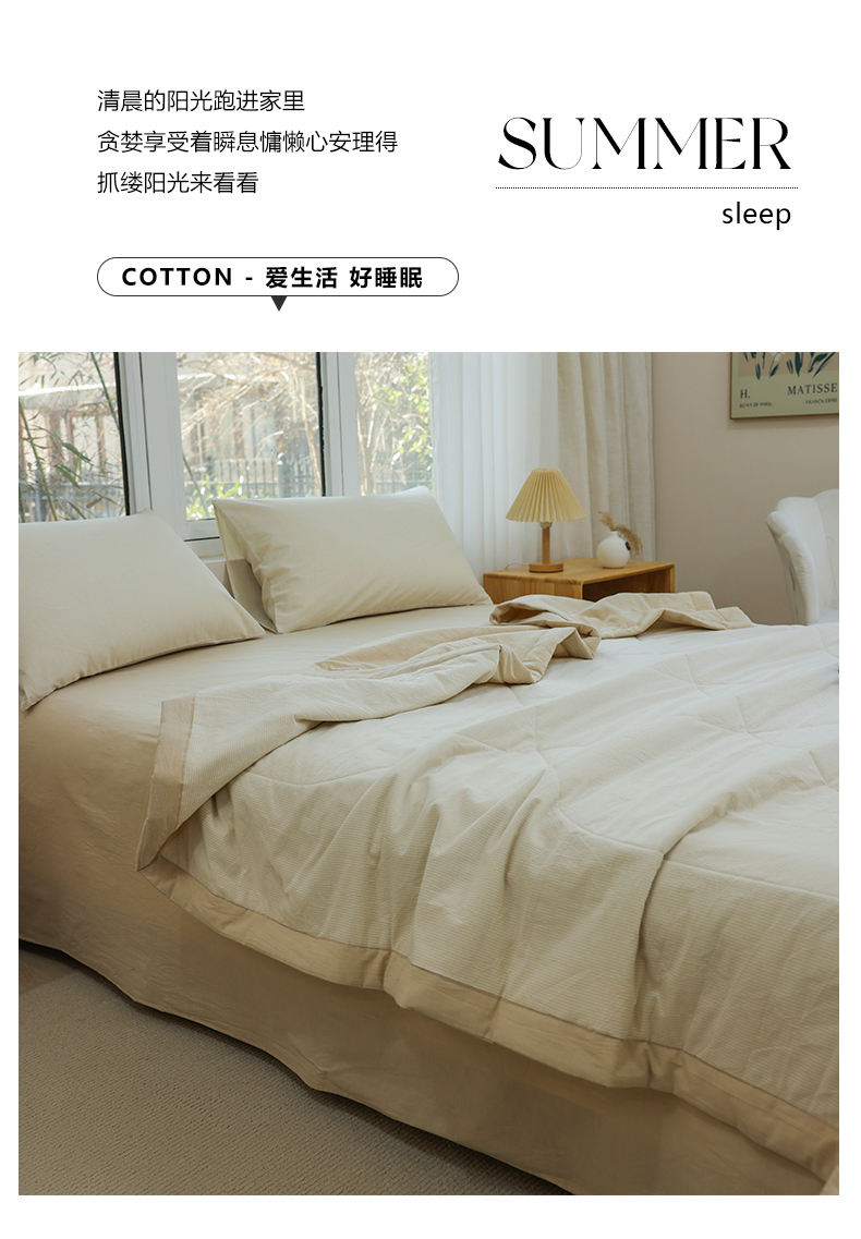 柠萌家居 2026新款全棉色织水洗棉棉花夏被四件套里外全棉空调被 夏凉被被子被芯 米密条