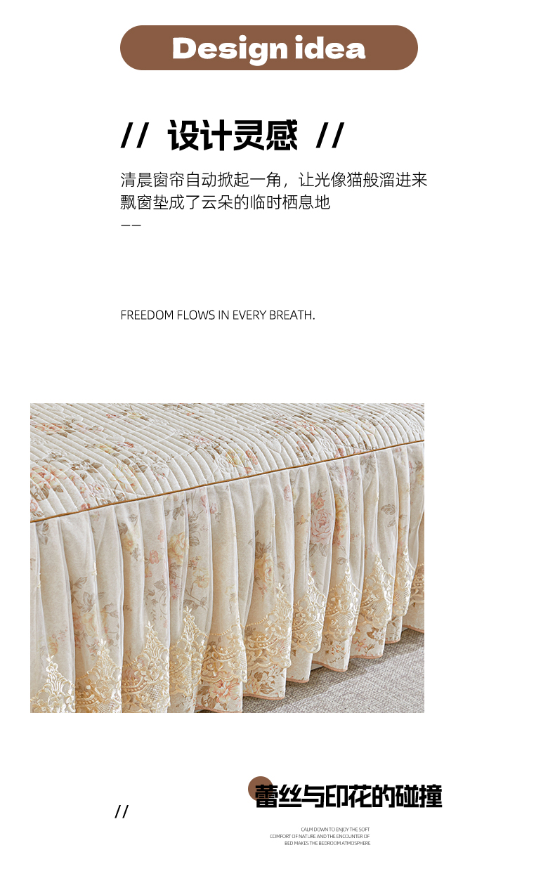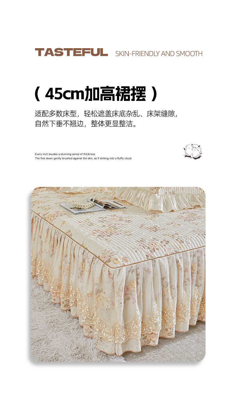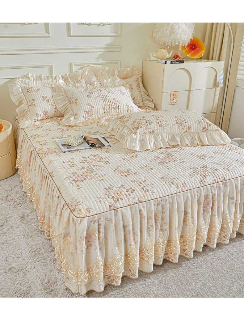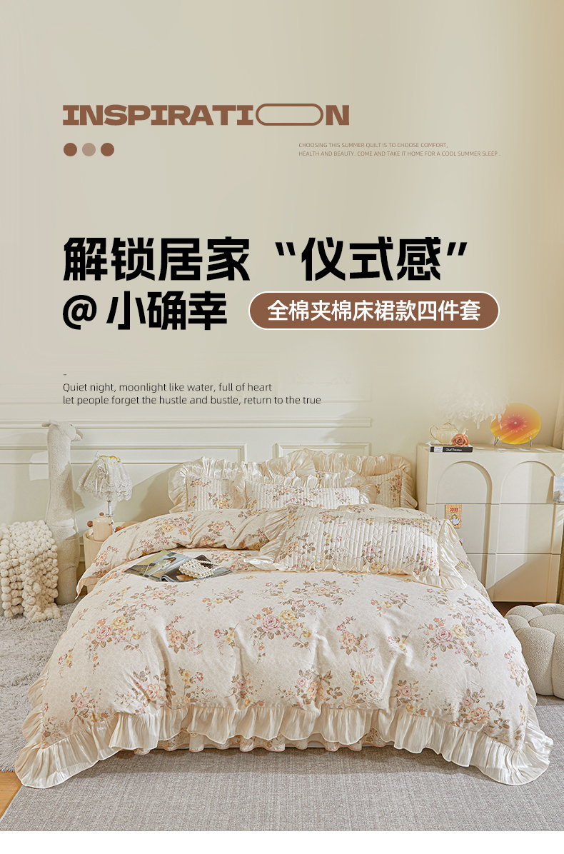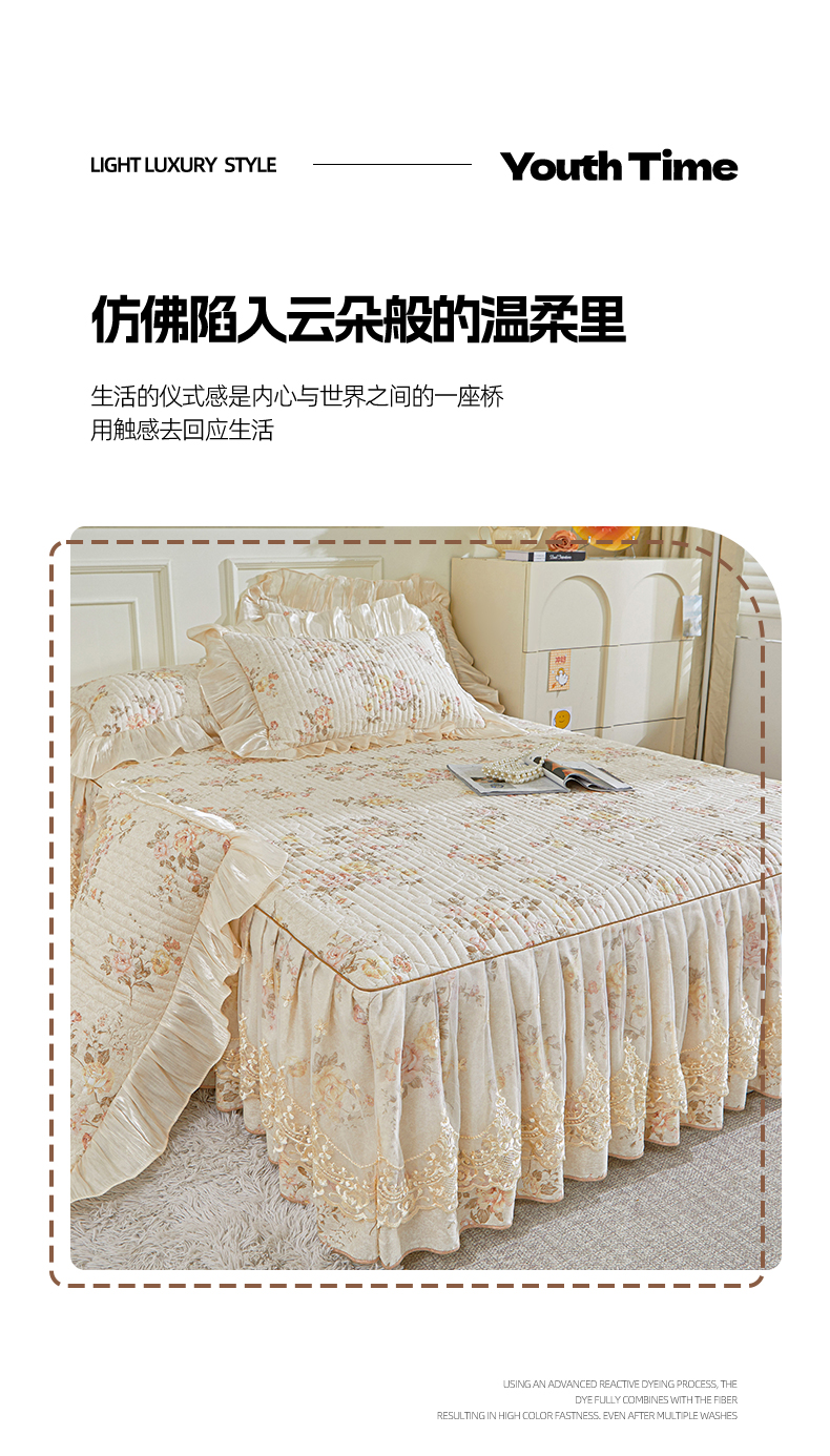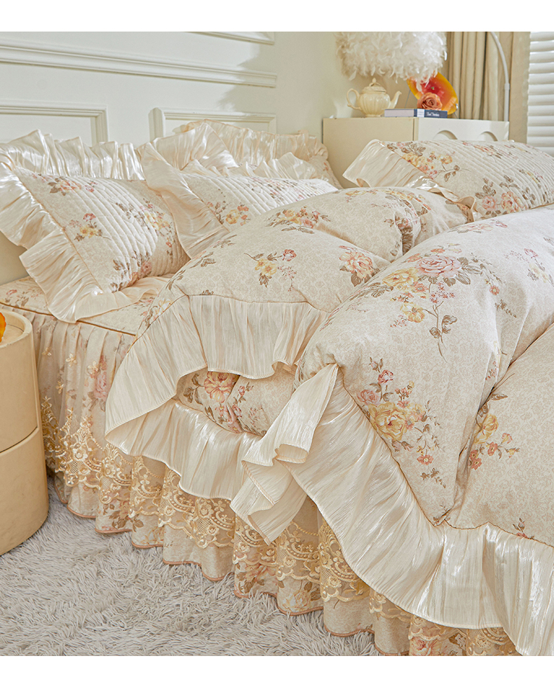 当前位置: 91家纺网 > 商品网购 > 床品套件 > 四件套 > 全棉普通四件套 > 宜凡家纺 2026新款全棉印花法式夹棉床裙四件套 花黛织梦