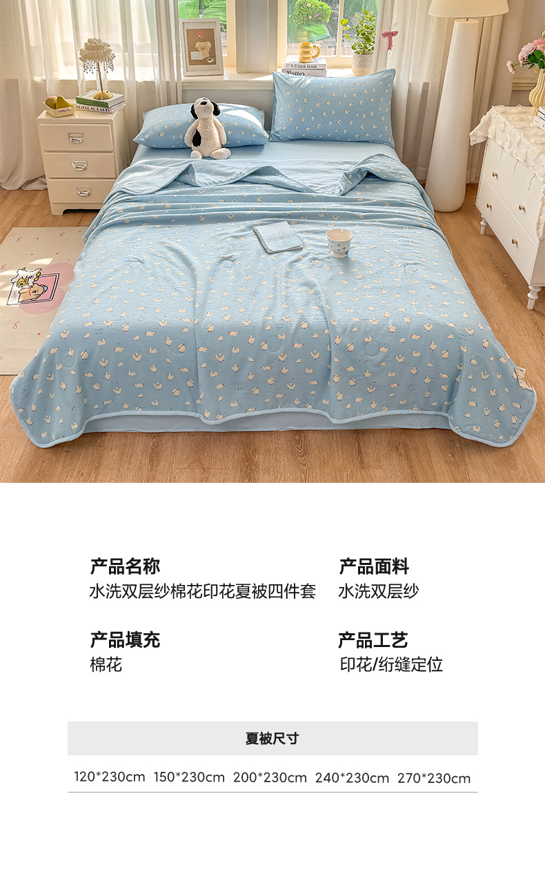商品名称:(总)爱屋及屋 2026新款小清新印花木棉双层纱小包边新疆棉花被夏被空调被夏凉被被子薄被芯春秋四季被