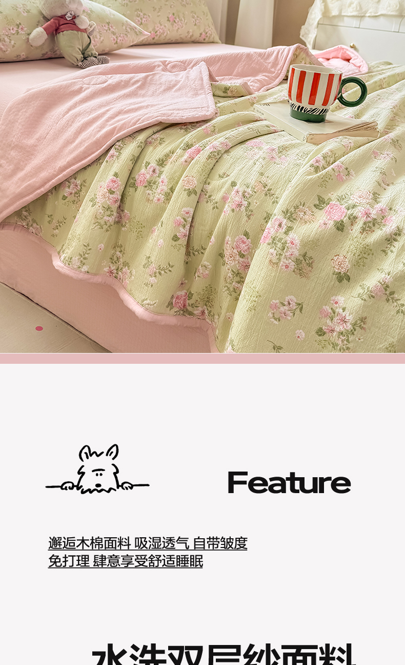 (总)爱屋及屋 2026新款小清新水洗棉棉花夏被夏凉被空调被,豹纹小熊,春意,复古小熊,蓝格子熊猫,落落繁花,绿色恐龙,曼塔玫瑰,萌宠乐园,清新绿意,竖条狗,唐小小,小橙子,小熊博士,星月小狗,元气桃桃,紫色郁金香