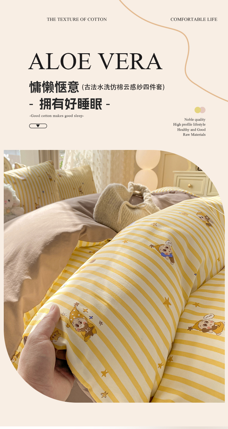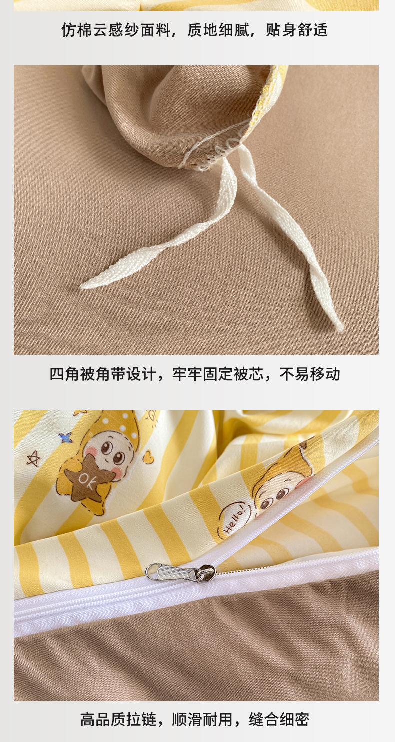 商品名称:豫见家纺 2026新款古法水洗仿棉云感纱四件套 晚安小星星